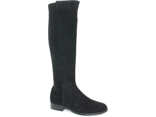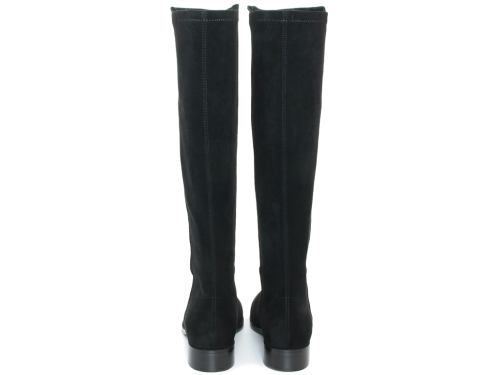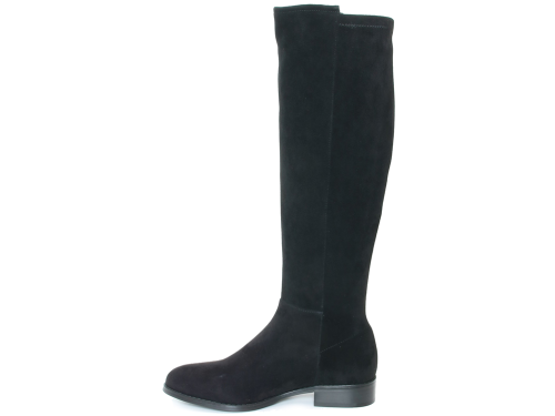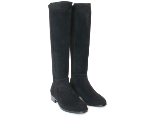 Black suede women's long boot by DiLauro. This boot is made of black suede with stretch material on the calf. The shoe has a rubber sole and combi lining.