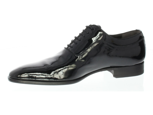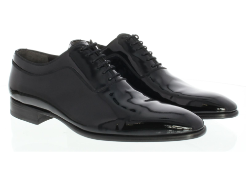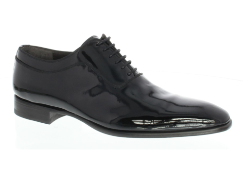 Black patent leather men's lace-up shoe by Magnanni. This shoe is ideal for under a tuxedo.