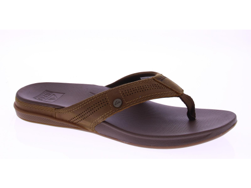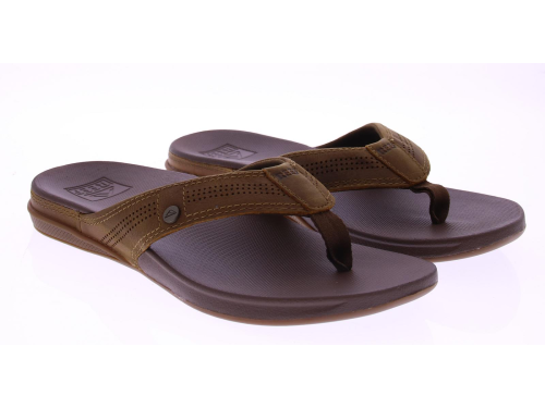 Brown men's flip-flops from the Reef brand. The Reef Cushion Lux RF0A3YMNTFF flip-flops for men feature a supportive footbed for extra comfort and a padded leather strap. The soft EVA footbed provides support and bounces back with every step.