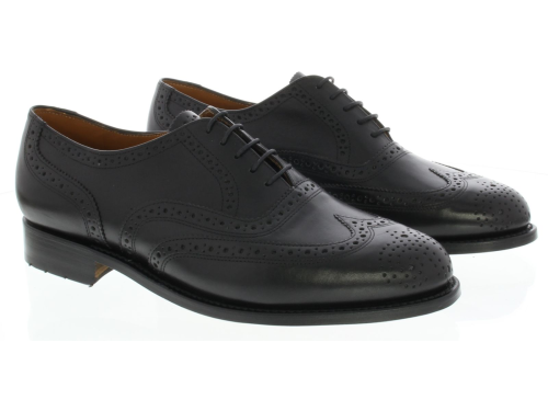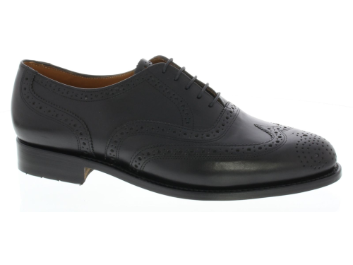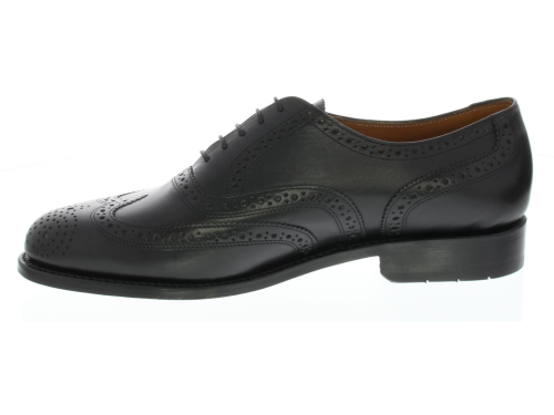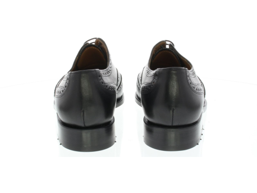 Black leather men's lace-up shoe from Van Bommel, model Olda 03.16. This classic brogue is made of smooth calf leather and has a full leather lining for breathable comfort. The leather sole and H-shaped last ensure a comfortable fit and a neat finish. A timeless style that pairs perfectly with both business and formal outfits.