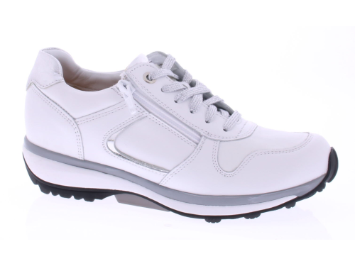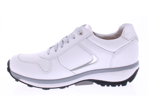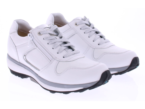 White leather women's sneaker by Xsensible. The shoe is equipped with the "stretchwalker" developed by Xsensible. This is based on a wooden balance slipper from Japan and ensures a natural and healthy posture. In combination with perfect cushioning, stability and firm grip, this shoe gives you the most comfortable walking experience. The sneaker has a removable footbed and a wider fit.