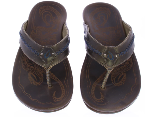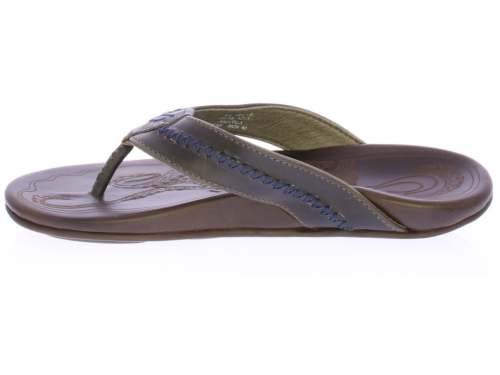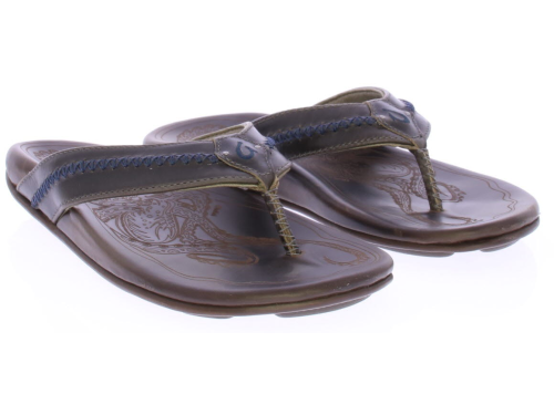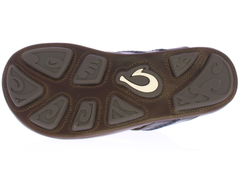 Khaki leren heren slipper van Olukai. Het merk Olukai volgt het ontwerp van de natuur, dat een anatomische ondersteuning van de voorvoet biedt en zorgt voor stabiliteit en ondersteuning.