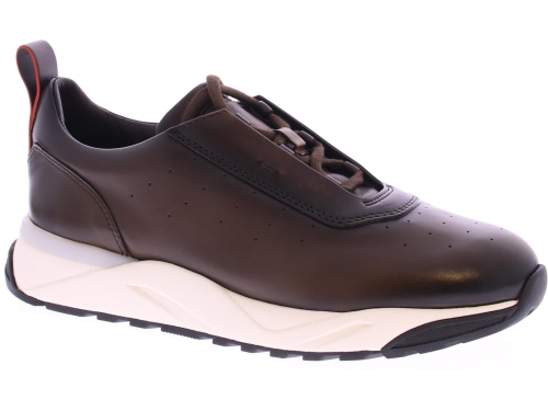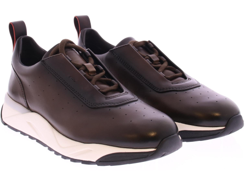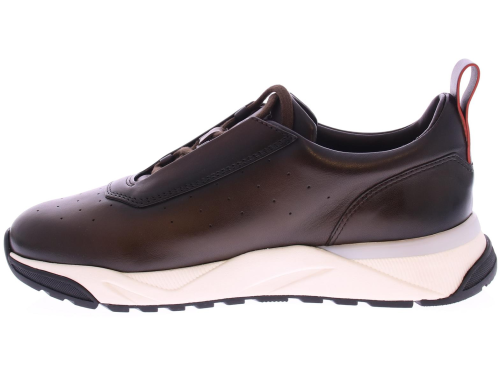 Donkerbruine leren heren sneaker van Santoni. Deze luxe sneakers zijn gemaakt van hoogwaardig leer, waar Santoni om bekend staat. De binnenzool is uitneembaar.