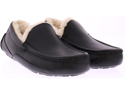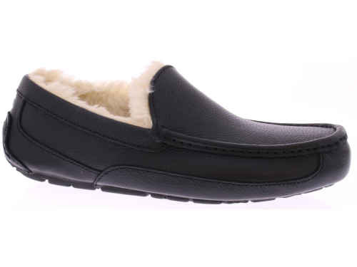 UGG Ascot Black Leather Zwarte pantoffels voor heren