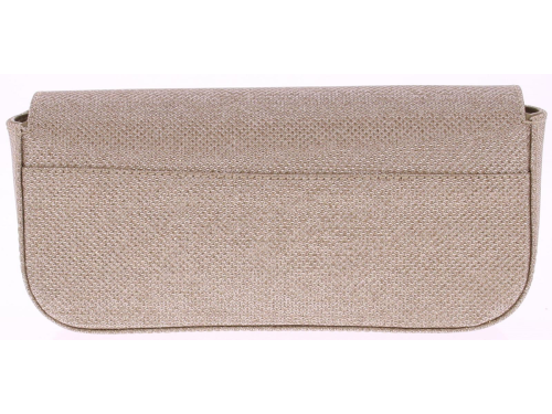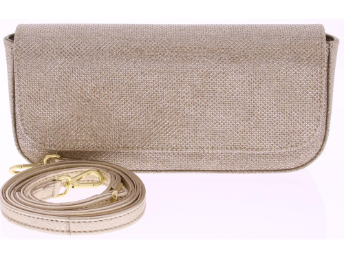 Platina glitterstof dames clutch van Unisa. Deze stijlvolle clutch heeft mooie afgeronde hoeken. De tas heeft ook een lange verstelbare schouderband. En passend bij diverse modellen uit onze collectie. Deze tas is 22 cm breed, 10 cm hoog en 4.5 cm diep.
