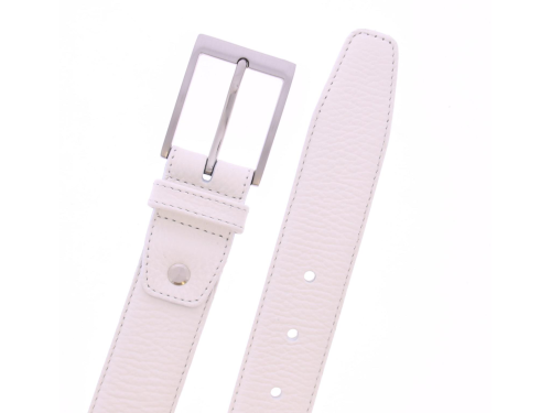 White leather men's belt by Pulles. This belt is easy to combine and can be shortened at the buckle side.