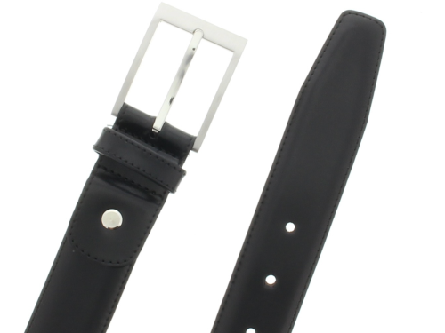 Black leather men's belt by Pulles. This easy to combine belt can be shortened on the buckle side.