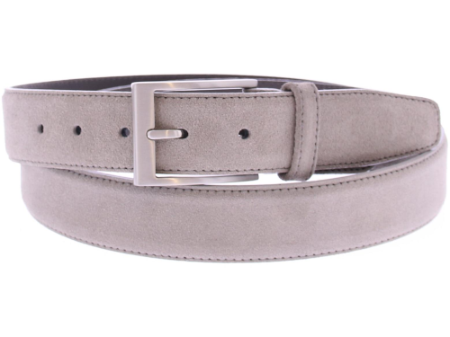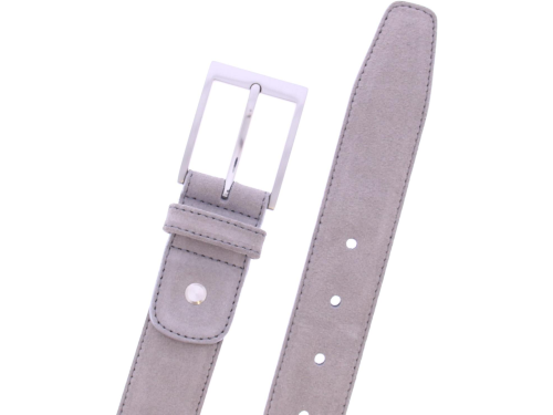 Gray suede belt. The belt is 3.5 cm wide, has a leather lining, and can be shortened at the buckle.