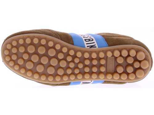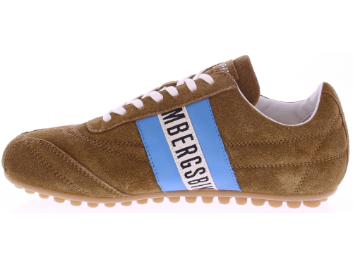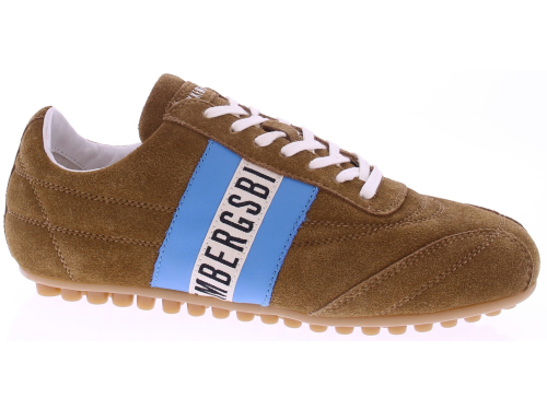 Cognac-colored suede women's sneakers from Bikkembergs, model 30608. These sneakers are made of suede and feature a light blue side band with the black Bikkembergs logo. The toe box and lines are subtly reinforced. The insole is removable, making this model suitable for your own insoles. The rubber sole ensures smooth and comfortable walking. A fresh and modern sneaker that pairs beautifully with denim or a casual spring look. Discover other women's sneakers from Bikkembergs at Klijsen.