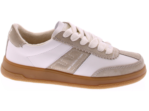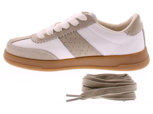 Cream leather and beige suede women's sneakers from EPT. These sneakers are crafted from a combination of supple white leather and beige suede. The rubber sole provides excellent grip and a sporty touch. A versatile sneaker that pairs effortlessly with both jeans and summer pants. Runs small. Discover other sneakers at Klijsen.