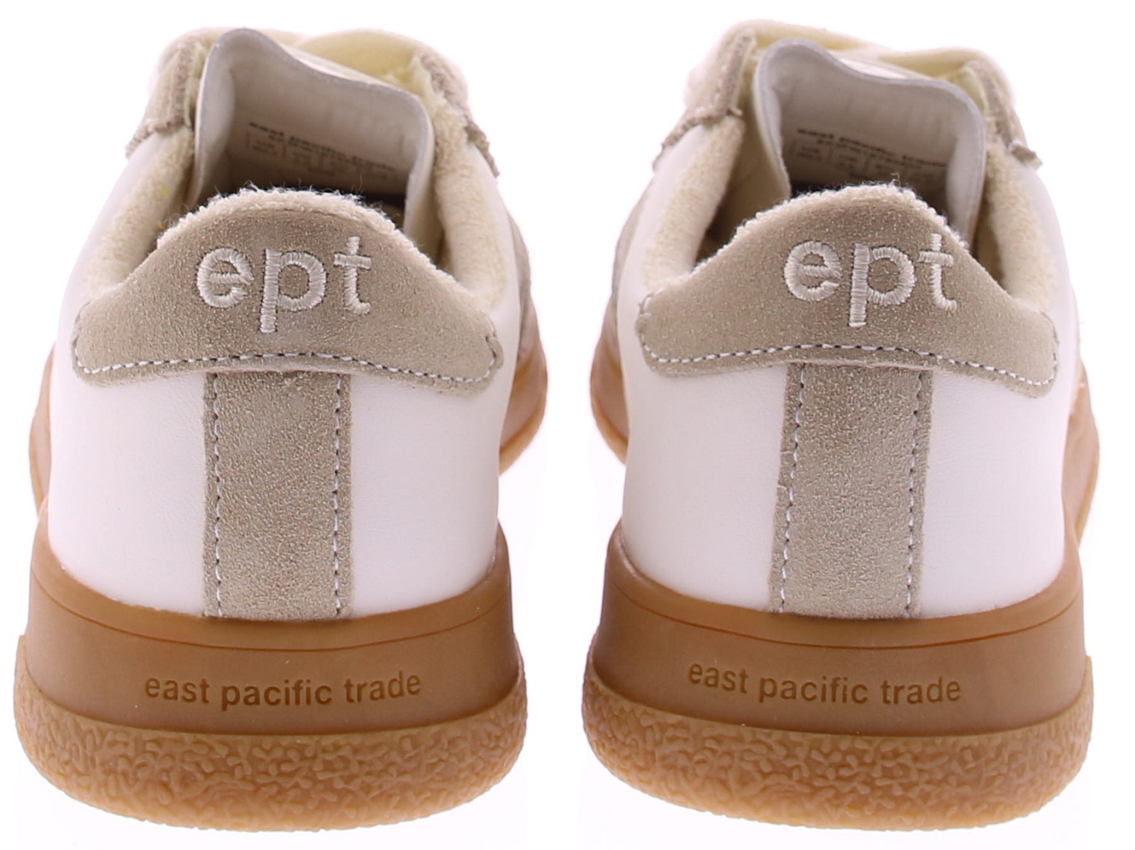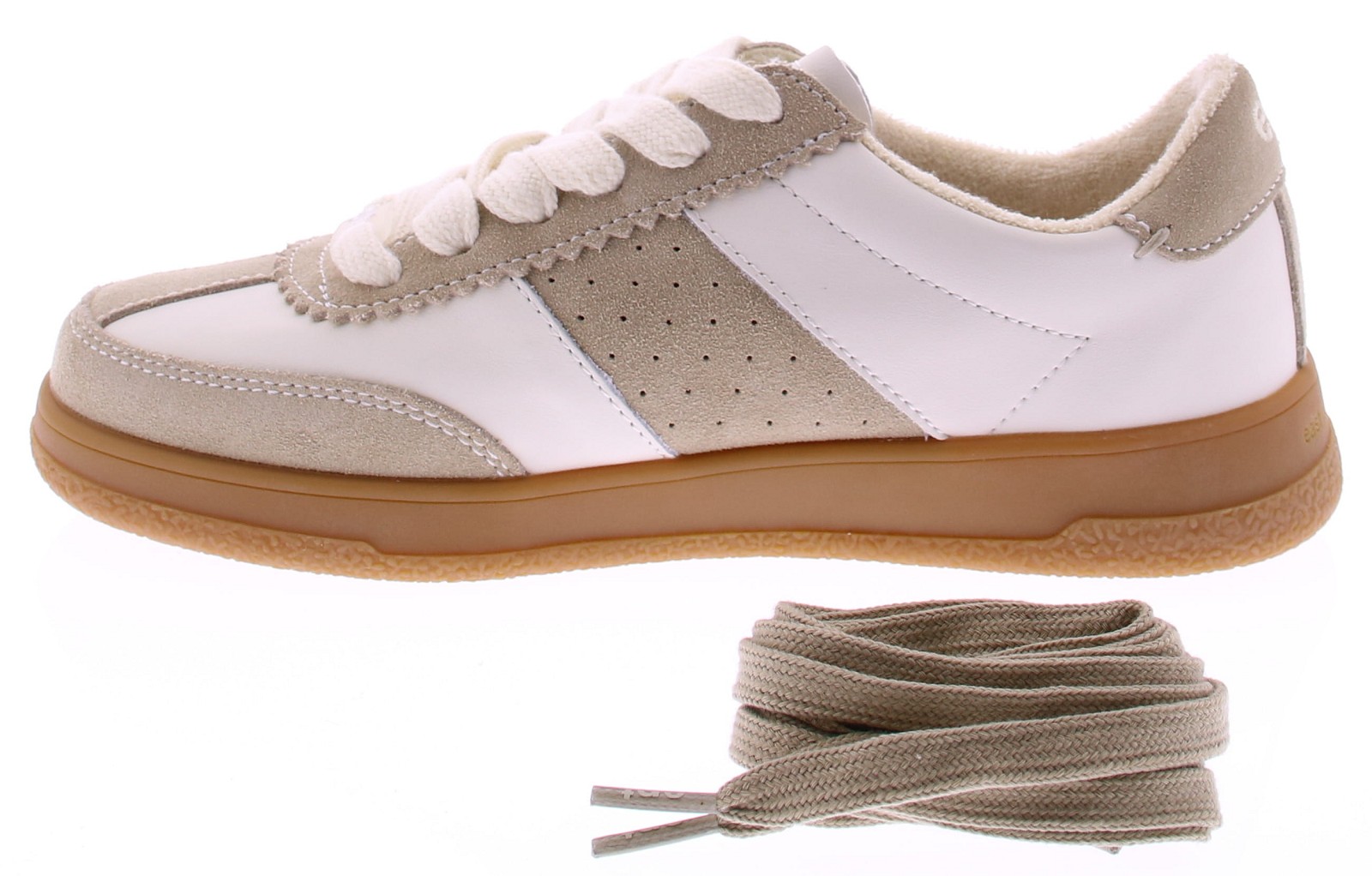 Cream leather and beige suede women's sneakers from EPT. These sneakers are crafted from a combination of supple white leather and beige suede. The rubber sole provides excellent grip and a sporty touch. A versatile sneaker that pairs effortlessly with both jeans and summer pants. Runs small. Discover other sneakers at Klijsen.