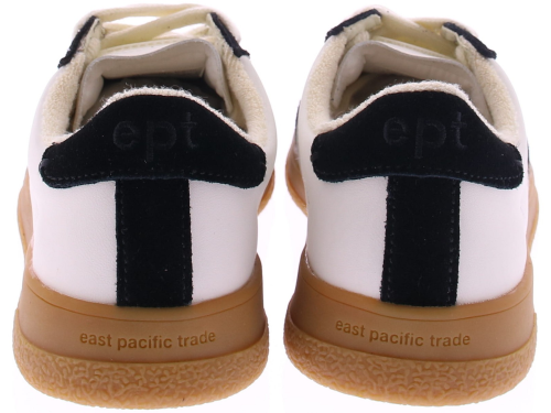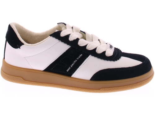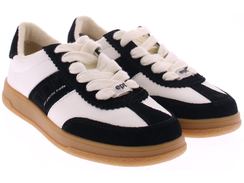 White leather and black suede women's sneakers from EPT. These sneakers are crafted from a combination of supple white leather and black suede. The rubber sole provides excellent grip and a sporty touch. A versatile sneaker that pairs effortlessly with both jeans and summer pants. Runs small. Discover other sneakers at Klijsen.