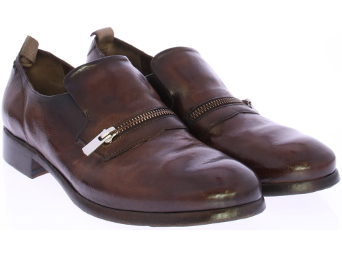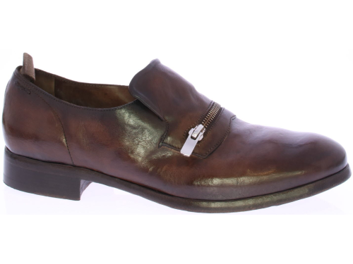 Men's loafer by Alexander Hotto made of hand-finished buffalo leather in a used look. The shoe has a zipper over the instep of the shoe and is closed high. The sole is made of leather with rubber and the lining is made of calf leather.