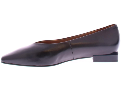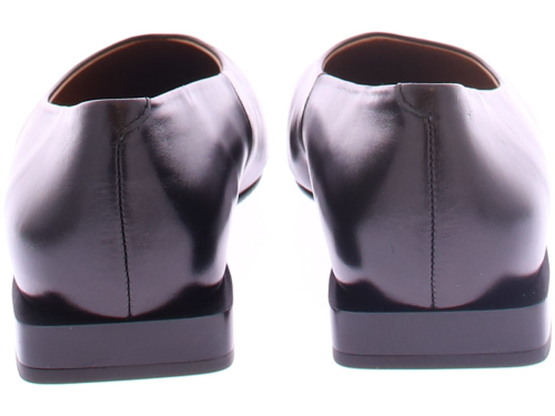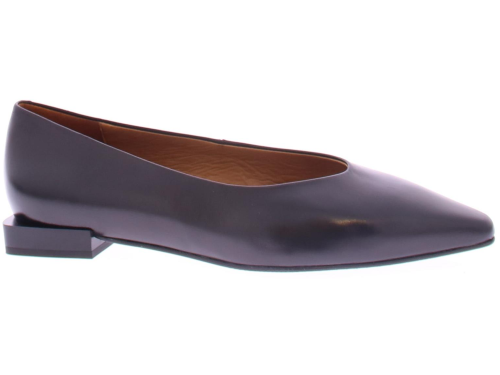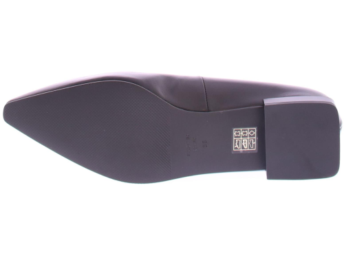 Black leather women's pump by Angel Alarcon. This pump has a slightly pointed toe and a fun playful block heel of 2 cm high. The lining is leather and the sole is rubber.