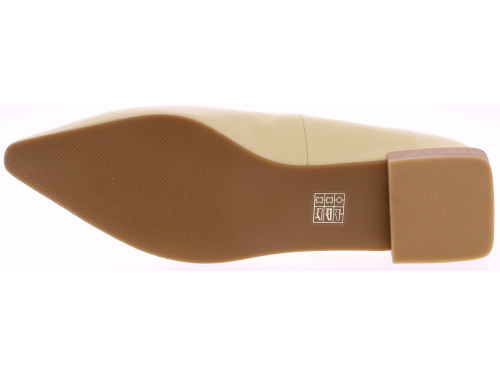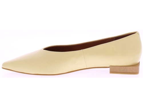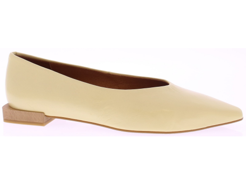 Light yellow leather women's pumps by Angel Alarcón. This ballerina, model 25508, has a pointed toe and a low, slightly square, 2 cm heel. The soft leather fits beautifully around the foot, making this a great everyday style. The simple shape makes it easy to pair with many outfits. Discover other women's pumps by Angel Alarcón at Klijsen.
