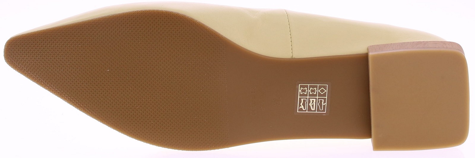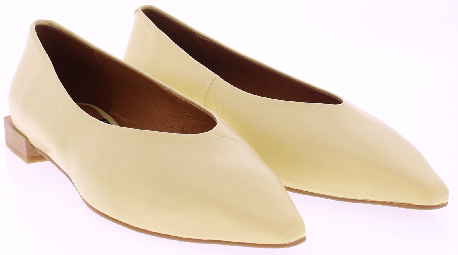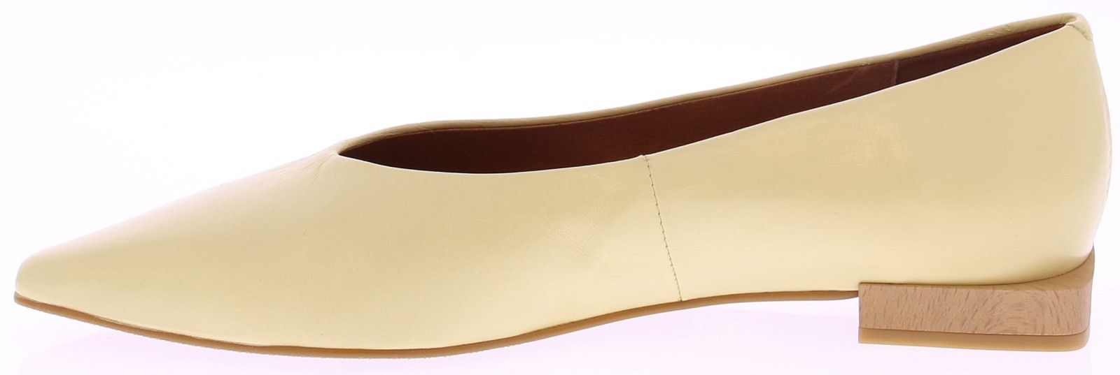 Light yellow leather women's pumps by Angel Alarcón. This ballerina, model 25508, has a pointed toe and a low, slightly square, 2 cm heel. The soft leather fits beautifully around the foot, making this a great everyday style. The simple shape makes it easy to pair with many outfits. Discover other women's pumps by Angel Alarcón at Klijsen.