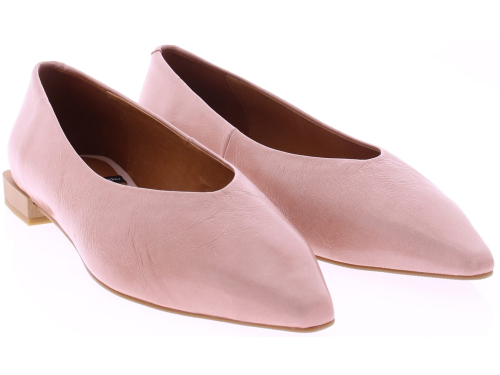 Pink leather women's ballerinas by Angel Alarcón. This ballerina, model 25508, has a pointed toe and a low, slightly square, 2 cm heel. The soft leather fits beautifully around the foot, making this a great style for everyday wear. The simple shape makes the shoe easy to pair with many outfits. Discover other women's pumps by Angel Alarcón at Klijsen.