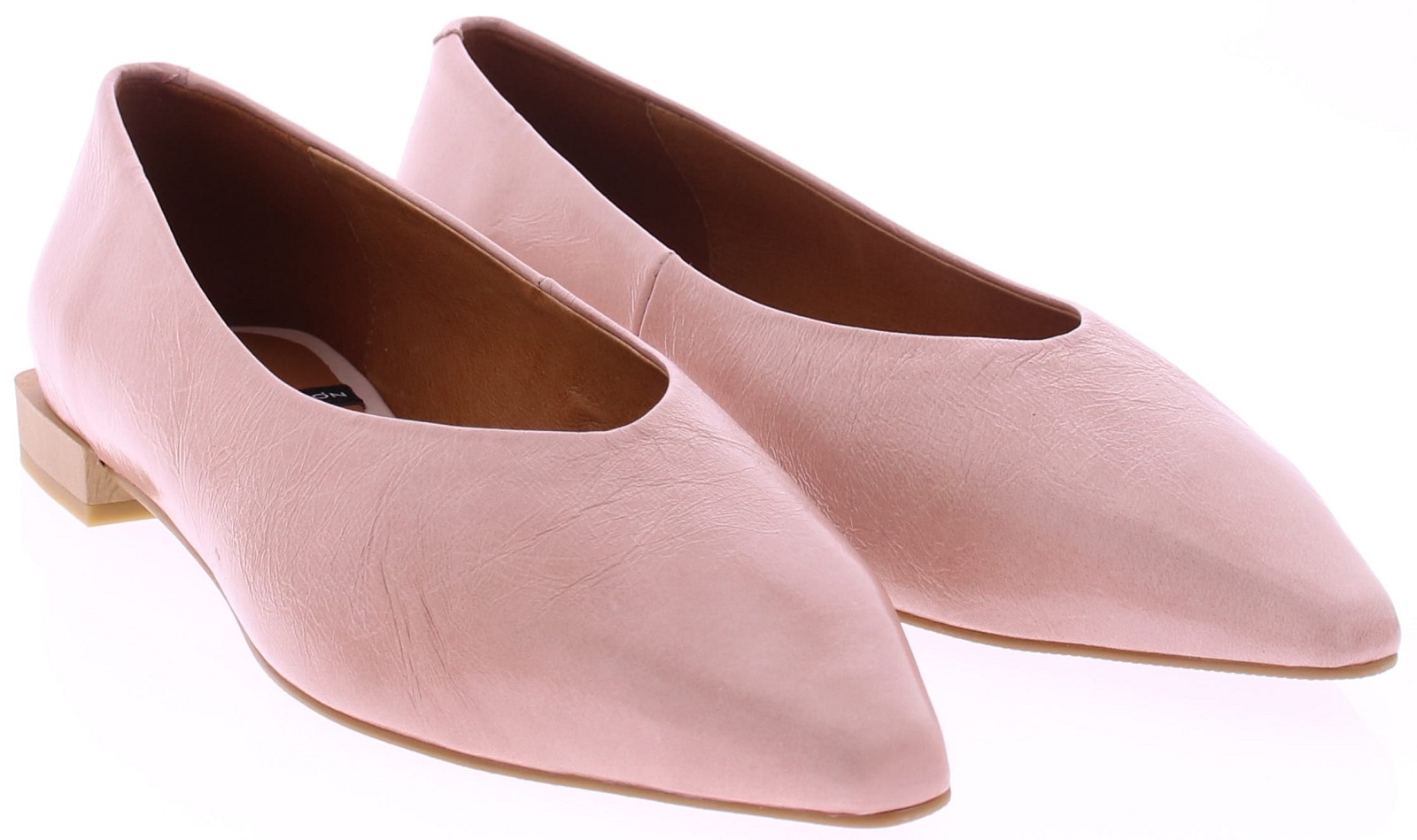 Pink leather women's ballerinas by Angel Alarcón. This ballerina, model 25508, has a pointed toe and a low, slightly square, 2 cm heel. The soft leather fits beautifully around the foot, making this a great style for everyday wear. The simple shape makes the shoe easy to pair with many outfits. Discover other women's pumps by Angel Alarcón at Klijsen.