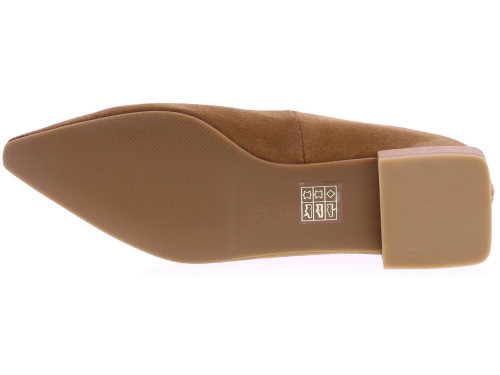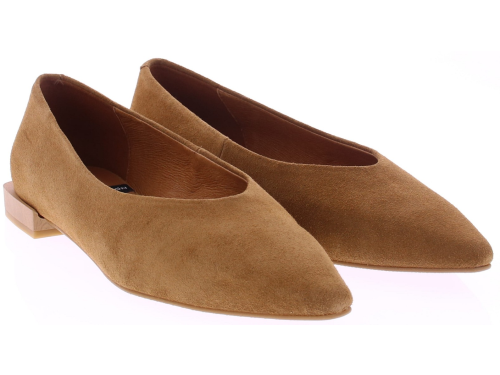 Mid-brown suede women's ballerinas from Angel Alarcón. These ballerinas, model 25508, have a pointed toe and a low, slightly square, 2 cm heel. The soft leather fits beautifully around the foot, making this a great everyday style. The simple shape makes them easy to pair with many outfits. Discover other women's pumps from Angel Alarcón at Klijsen.