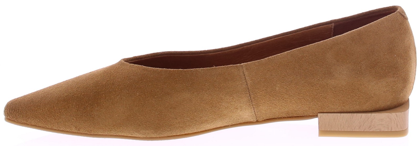 Mid-brown suede women's ballerinas from Angel Alarcón. These ballerinas, model 25508, have a pointed toe and a low, slightly square, 2 cm heel. The soft leather fits beautifully around the foot, making this a great everyday style. The simple shape makes them easy to pair with many outfits. Discover other women's pumps from Angel Alarcón at Klijsen.