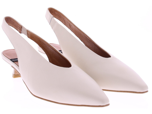 Off-white leather slingback pump by Angel Alarcón. This women's pump features a pointed toe and a 3cm queen-size heel. The elastic heel ensures a snug fit and is comfortable to wear. An elegant style that looks great under a dress or skirt, but also pairs beautifully with trousers. Discover other women's pumps by Angel Alarcón at Klijsen.