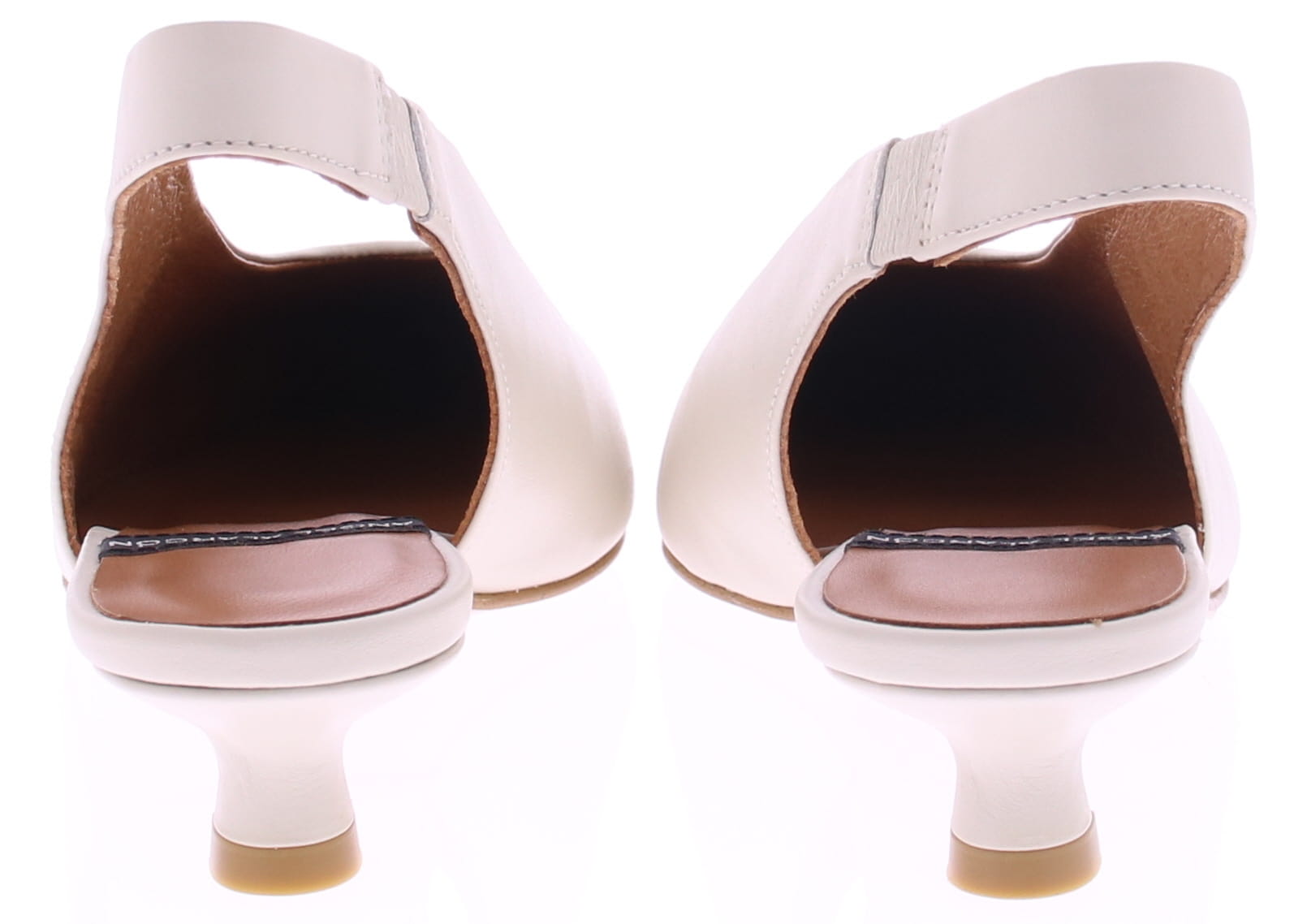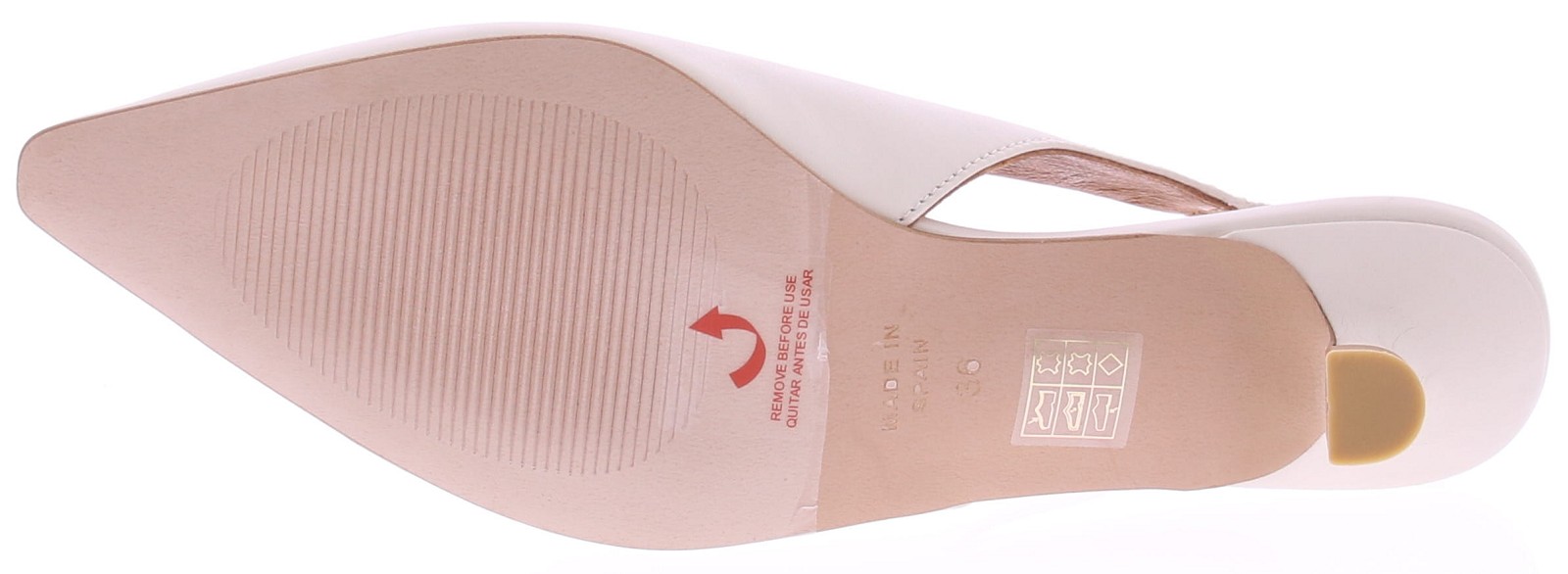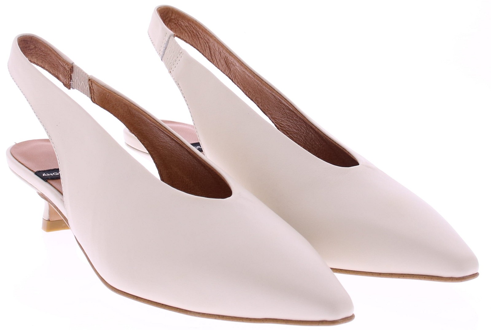 Off-white leather slingback pump by Angel Alarcón. This women's pump features a pointed toe and a 3cm queen-size heel. The elastic heel ensures a snug fit and is comfortable to wear. An elegant style that looks great under a dress or skirt, but also pairs beautifully with trousers. Discover other women's pumps by Angel Alarcón at Klijsen.