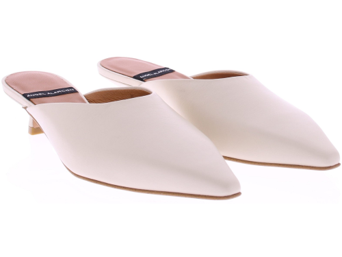 Cream-colored leather women's mules by Angel Alarcón. These mules have a pointed toe and a 3cm queen-size heel. The upper and lining are leather. An elegant mule that pairs beautifully with a dress, skirt, or formal trousers. Discover other women's mules by Angel Alarcón at Klijsen.