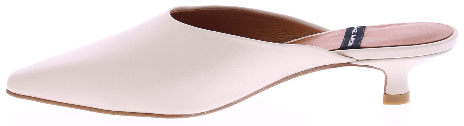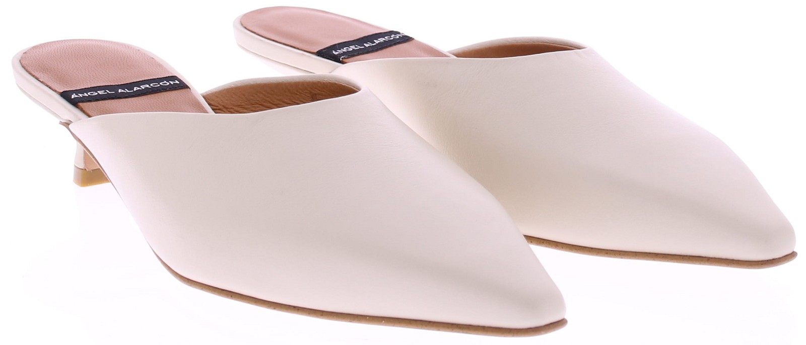 Cream-colored leather women's mules by Angel Alarcón. These mules have a pointed toe and a 3cm queen-size heel. The upper and lining are leather. An elegant mule that pairs beautifully with a dress, skirt, or formal trousers. Discover other women's mules by Angel Alarcón at Klijsen.