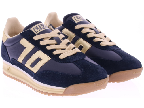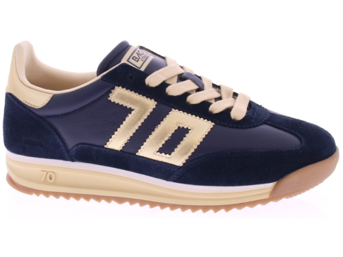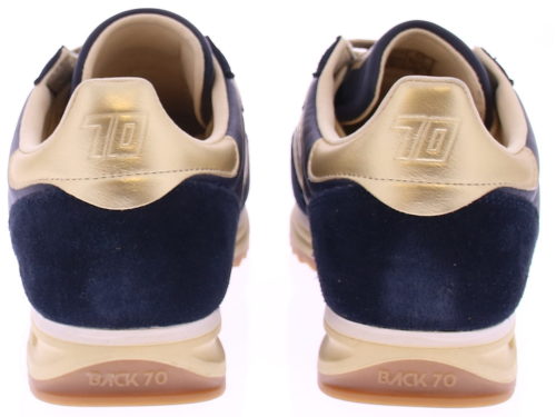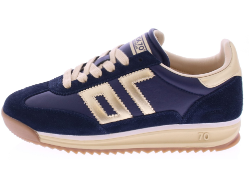 Dark blue suede and fabric women's sneakers from Back 70. These Back 70 joggers N03 are a nod to the sporty flair of the '70s. Made from a combination of dark blue suede and fabric, these sneakers have an authentic retro look that perfectly complements a modern wardrobe. The gold accents create a fresh, sporty look, while the fabric lining and removable footbed guarantee all-day comfort. Thanks to the lace-up closure and rubber outsole, the sneakers offer a secure fit and plenty of grip.