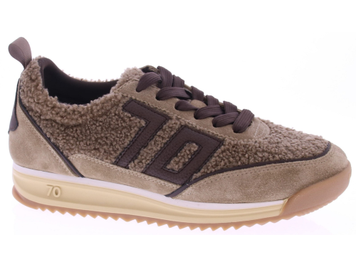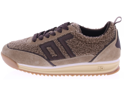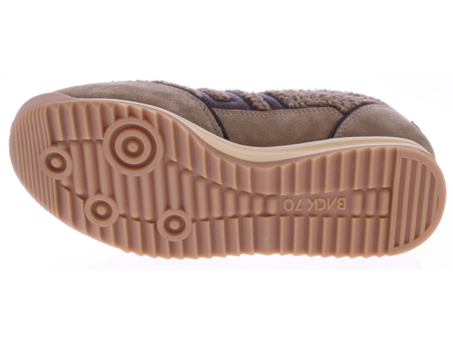 Taupe suede and teddy fabric women's sneakers from Back 70. These Back 70 jogger FT12 women's sneakers are a nod to the sporty flair of the '70s. Made from a combination of taupe suede and textile, these sneakers have an authentic retro look that perfectly complements a modern wardrobe. The dark brown accents create a fresh, sporty look, while the textile lining and removable footbed guarantee all-day comfort. Thanks to the lace-up closure and rubber outsole, the sneakers offer a secure fit and plenty of grip.