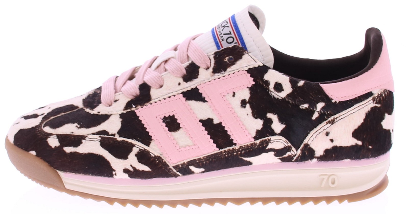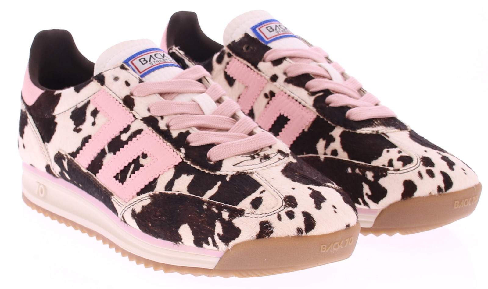 Cow print women's sneakers from Back 70. These Back 70 jogger L51 women's sneakers are a nod to the sporty flair of the '70s. Made from a combination of pony and leather, these sneakers have an authentic retro look that perfectly complements a modern wardrobe. The soft pink accents create a fresh, sporty look, while the textile lining and removable footbed guarantee all-day comfort. Thanks to the lace-up closure and rubber outsole, the sneakers offer a secure fit and plenty of grip.