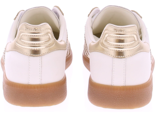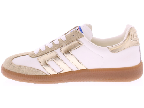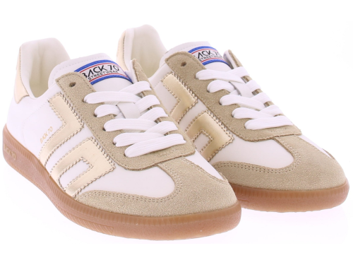 Beige suede with metallic gold and white leather sneakers from Back70 for women. These retro women's sneakers from Back70, the CLOUD 2505-17, in white and gold, have a honey-colored sole and a metallic gold logo and heel counter. The sole is removable. Perfect for any casual outfit. Buy women's sneakers from Back70 now at Klijsen Schoenmode. Free shipping from €79.95. Order before 3 PM, shipped the same business day.