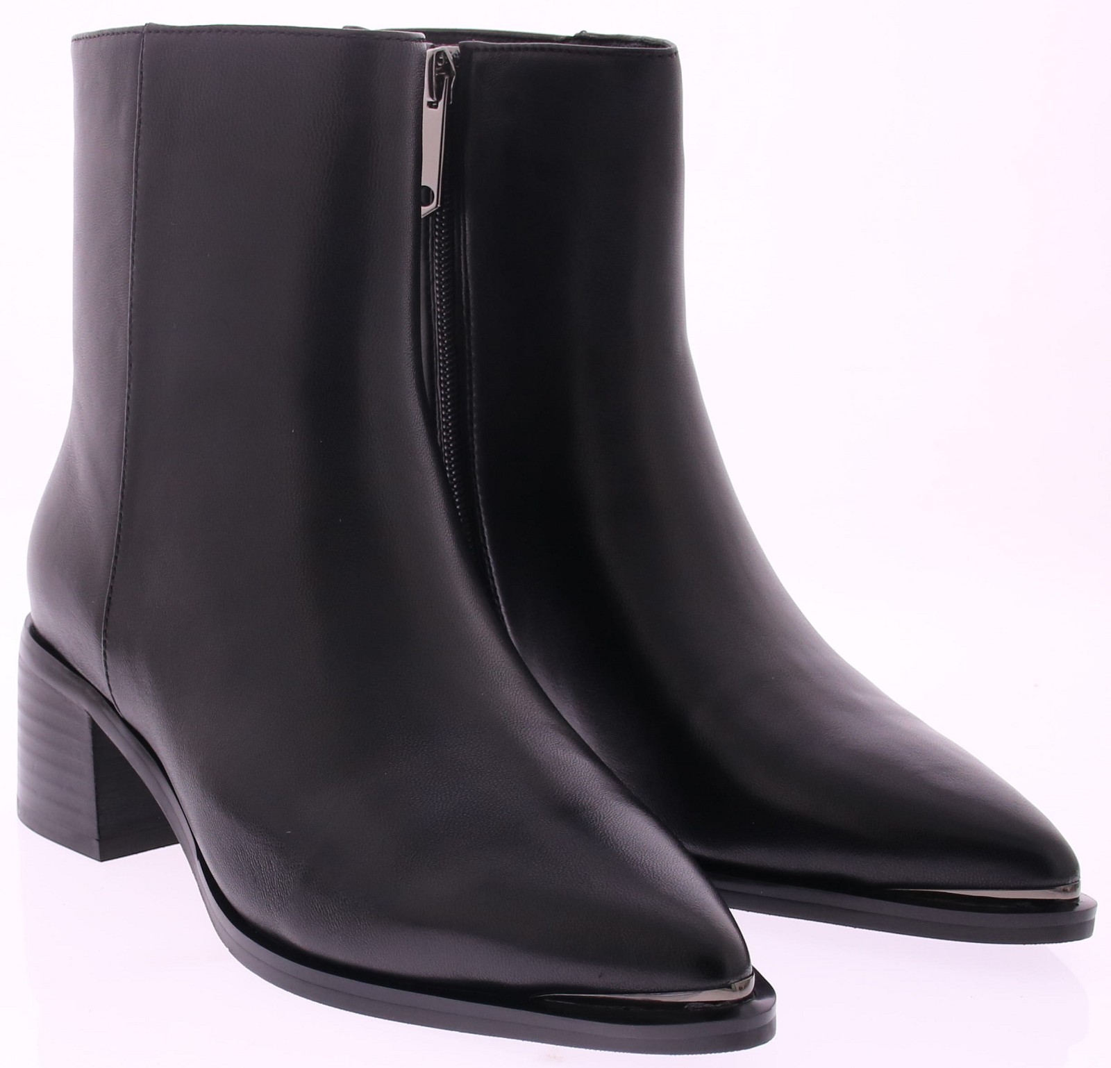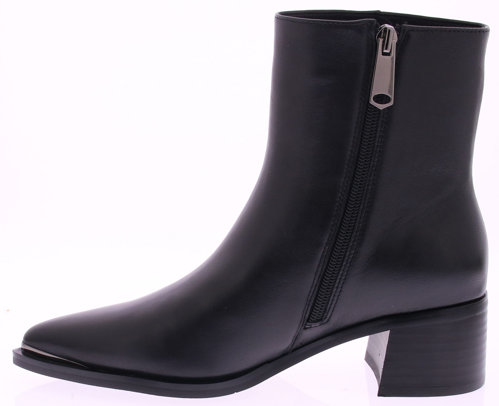 Black leather women's short boot from Bella di Roma. This stylish Bella di Roma boot is crafted from soft nappa leather and features a beautiful metal finish at the toe. The leather lining provides extra comfort, and the inside zipper makes it easy to put on and take off. The boot sits on a comfortable 4cm block heel. A stylish boot that you can wear with anything.