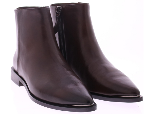 Red-brown leather women's short boot from Bella di Roma. This stylish Bella di Roma boot is crafted from soft nappa leather and features a beautiful metal finish at the toe. The leather lining provides extra comfort, and the inside zipper makes it easy to put on and take off. The boot sits on a comfortable 2cm heel. A stylish boot that you can wear with anything.
