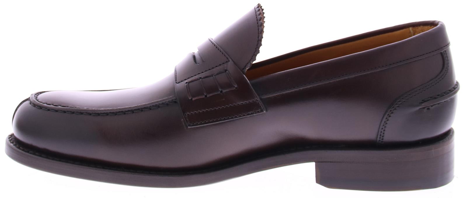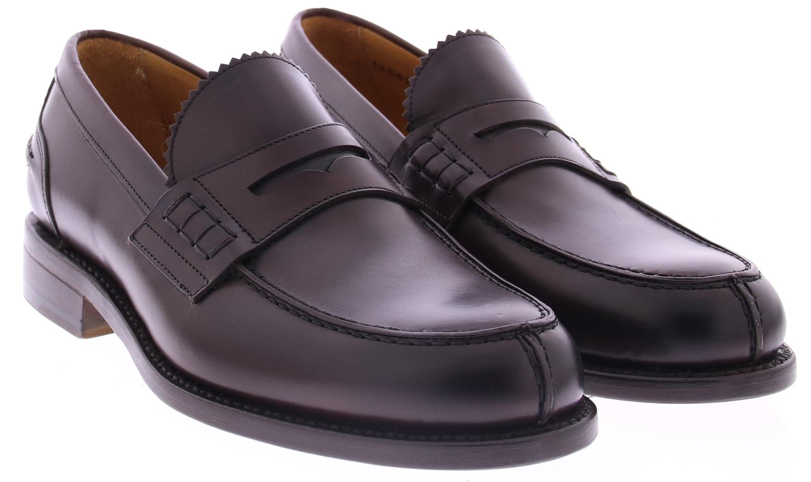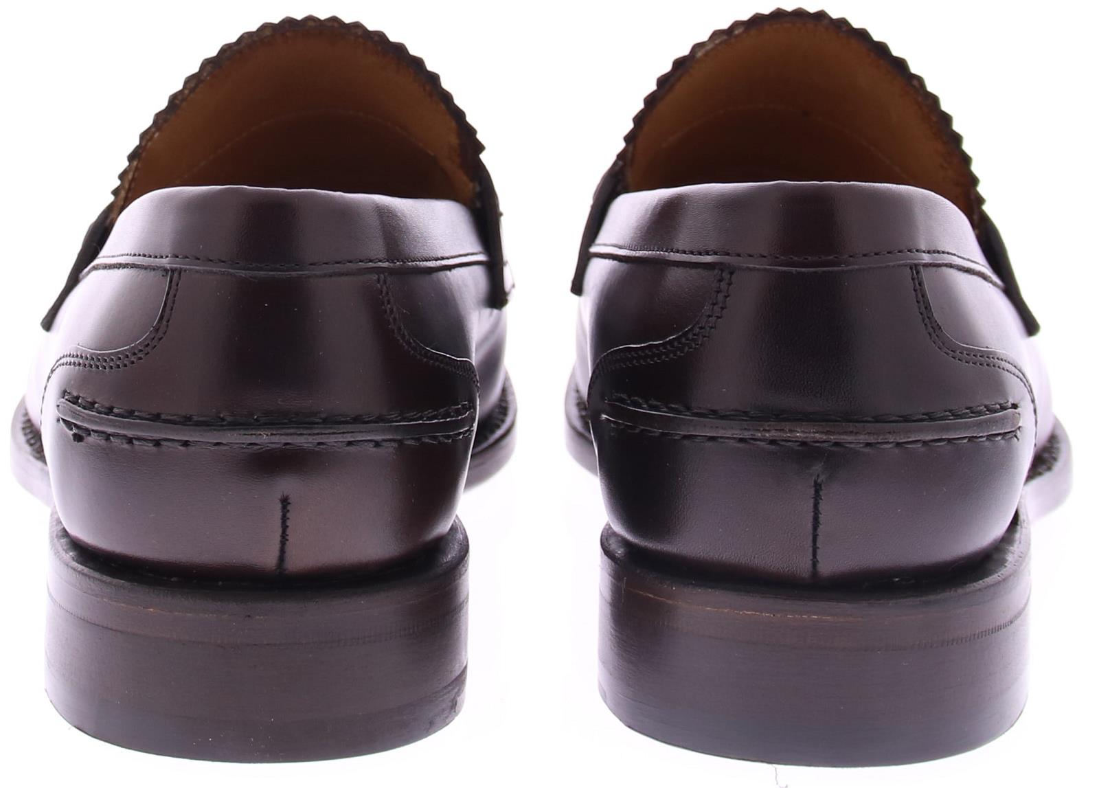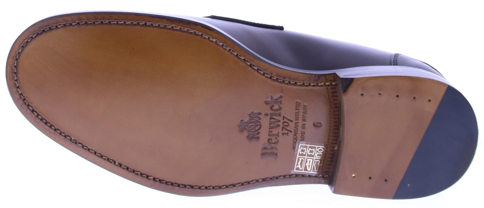 Dark brown leather men's loafer by Berwick. This loafer comes on a round last with a coarse stick edge along the edge of the shoe. The sole and lining are made of leather.