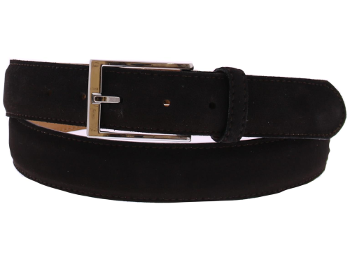 Dark brown suede men's belt by Berwick. The belt has a leather lining and can be shortened on the buckle side.
