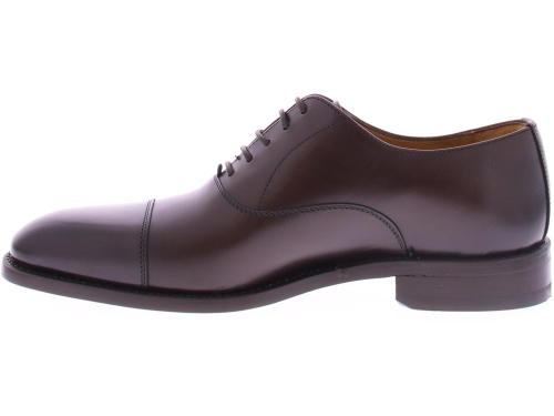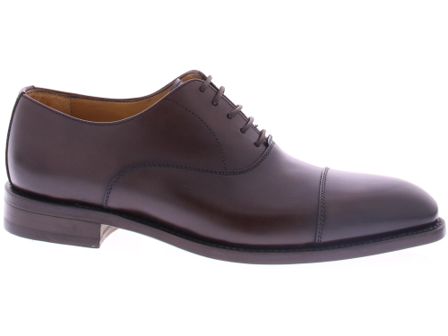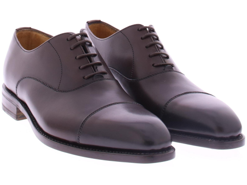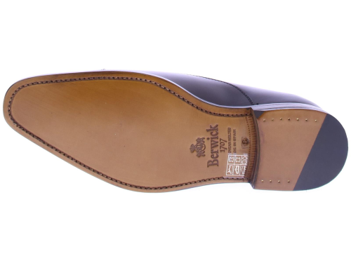 Men's lace-up shoe with toe seam from Berwick made of dark brown calf leather on a leather sole with leather lining. The construction method is goodyear.