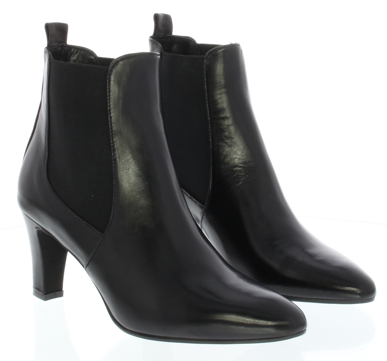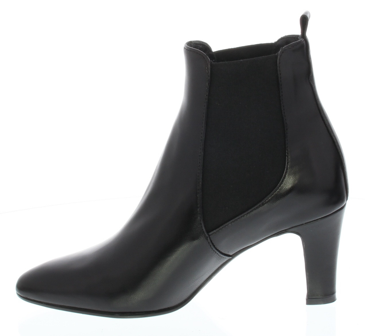 Black leather ladies chelsea boot by Cypres. Made on an oval last with a 6 cm heel. Because they fit nicely around the leg, they are also suitable to wear with a skirt or dress. Fits slightly smaller.