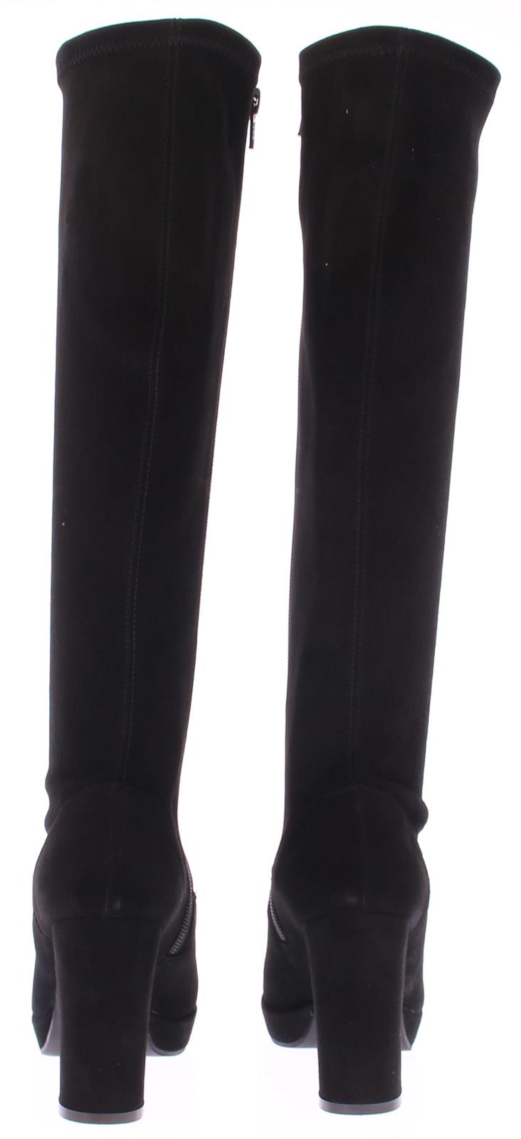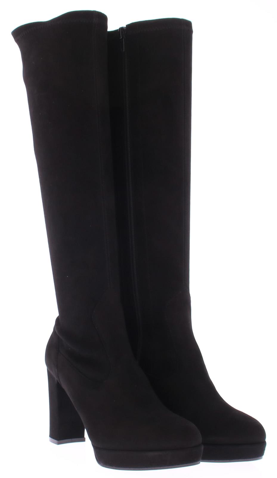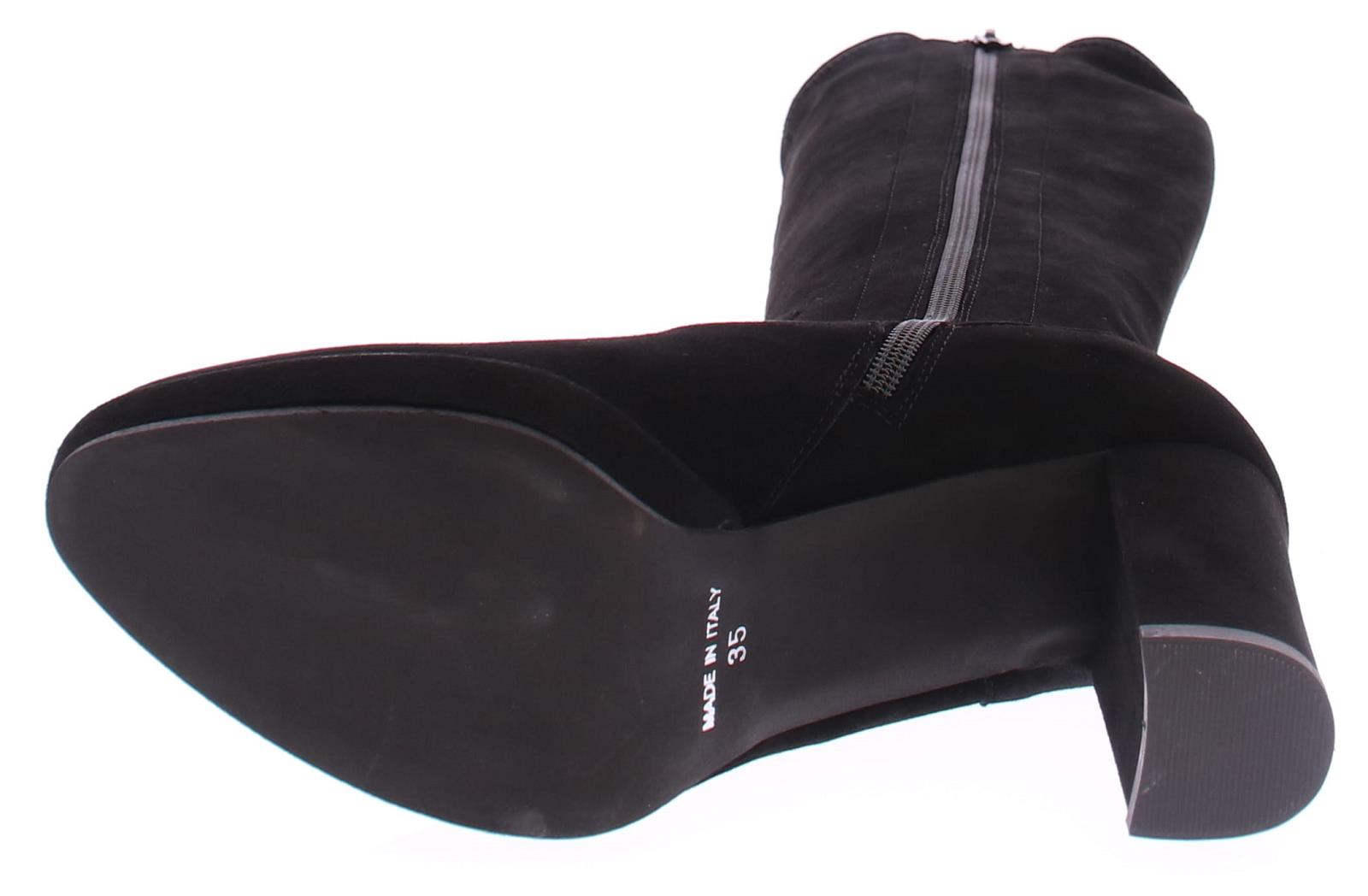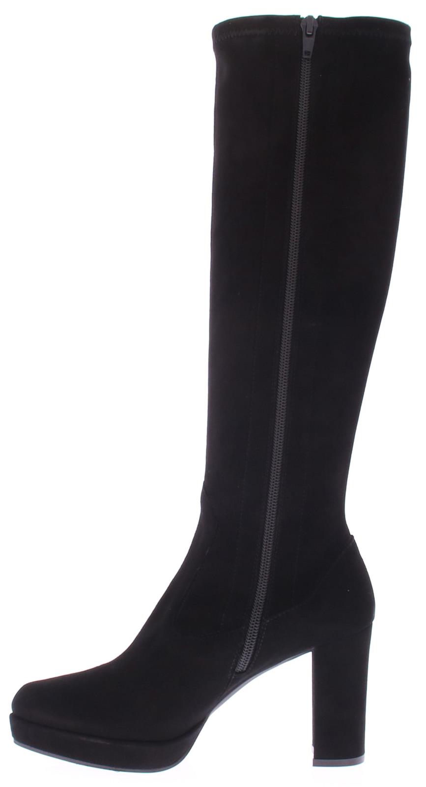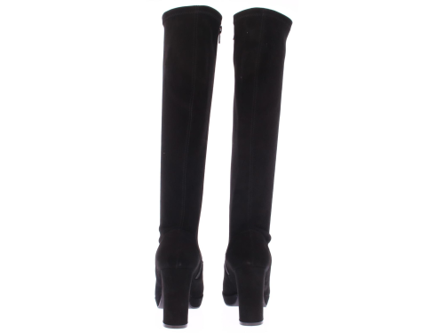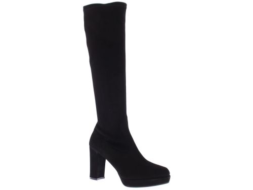 Black suede long ladies boot by Lilian. With stretch shaft with a zipper, which forms nicely around every calf. The very well-fitting last with platform sole and straight heel has been a successful model for years. The platform sole of 1 cm makes the height of the 9 cm heel feel lower.