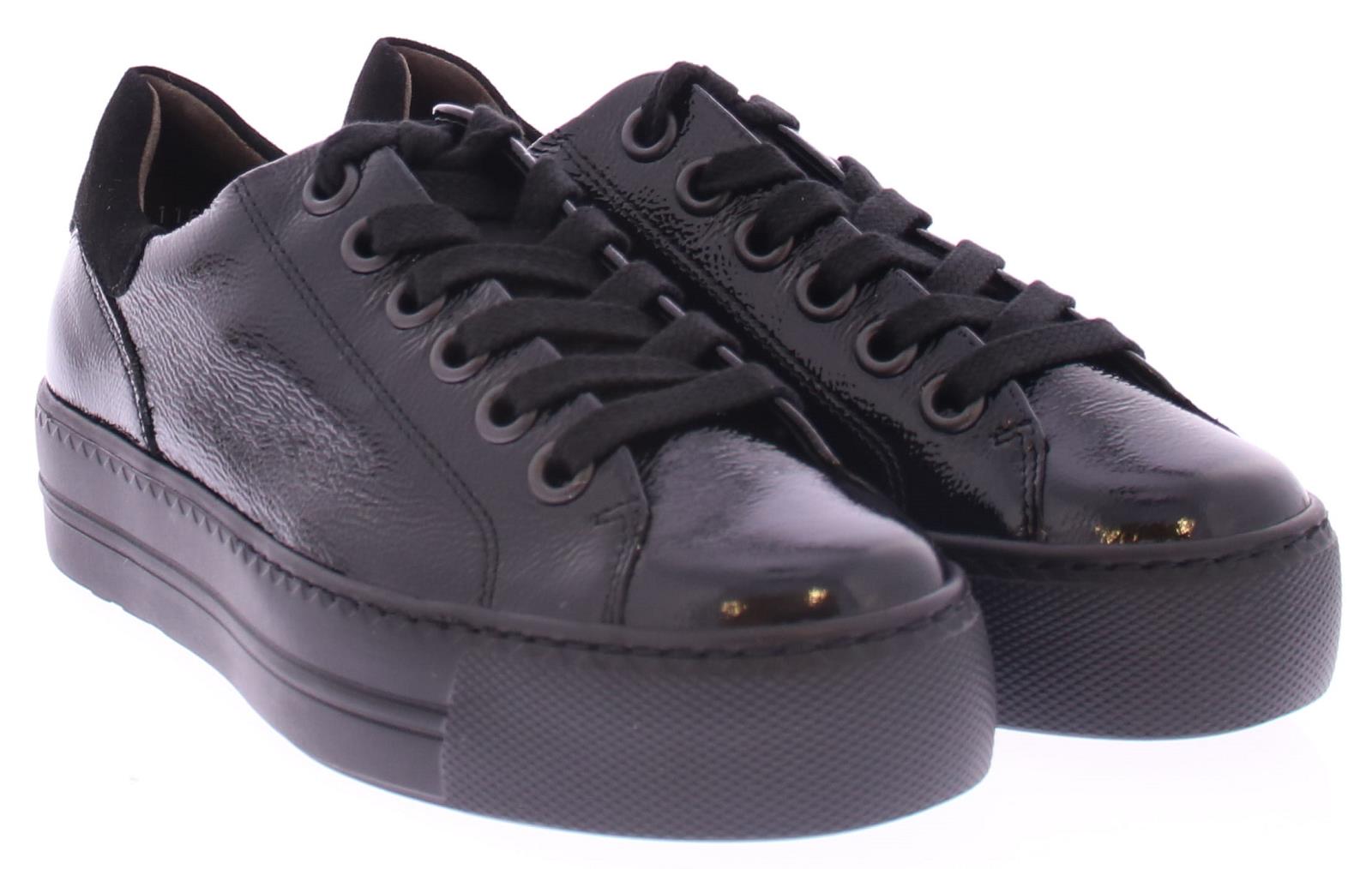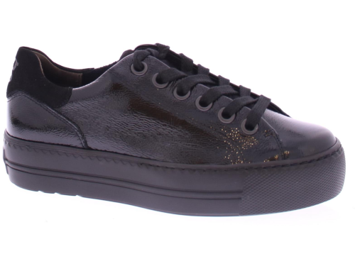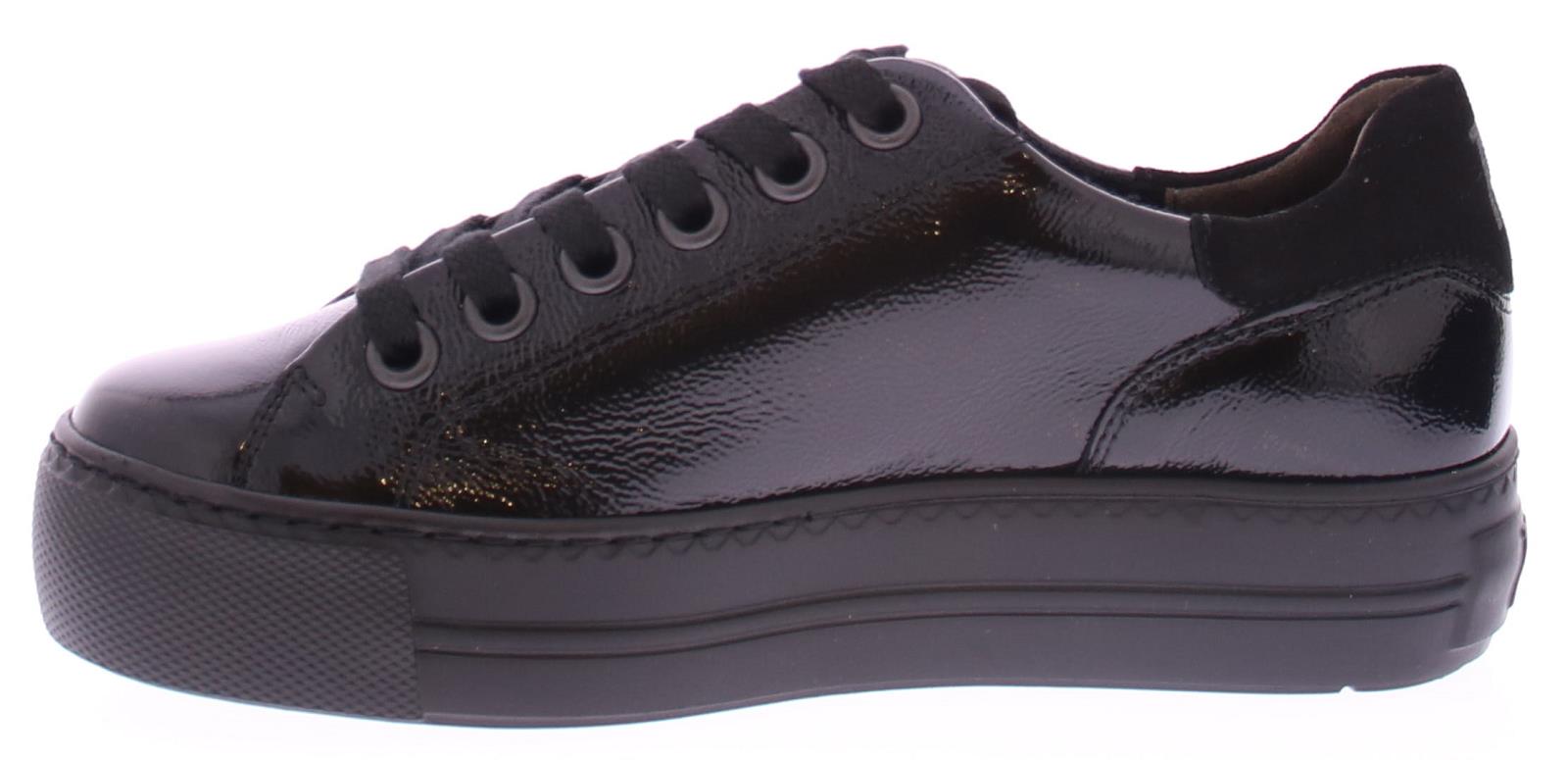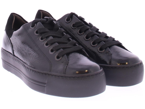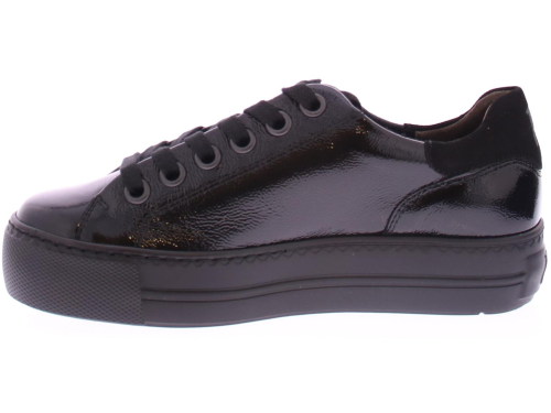 Black patent leather women's sneaker by Paul Green. Beautiful luxury sneaker made of super soft leather with a very comfortable footbed. The nice slightly thicker sole is lightweight.