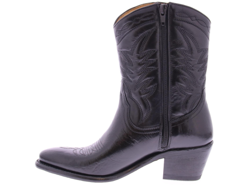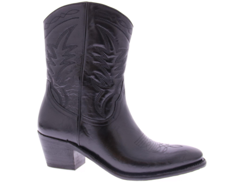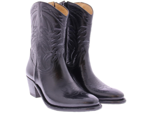 Black leather women's ankle boots by Perlita. Luxurious, quietly executed city western boot on an oval last with a slanted 5 cm heel. They are a bit more spacious.
