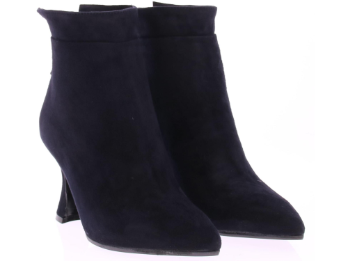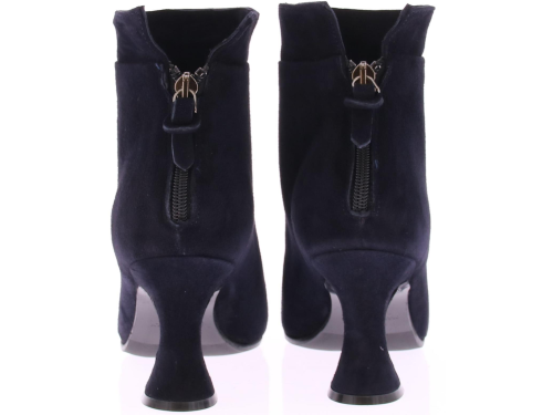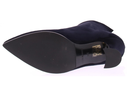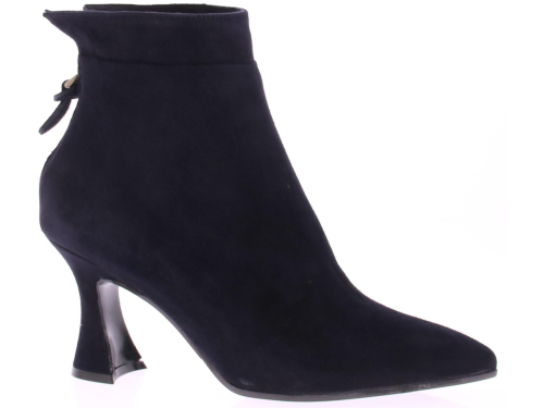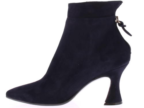 Dark blue suede women's ankle boot from Cypres. The boot has a pointed toe and a zipper at the back of the heel. The heel height is 7 cm and the shape is slightly flared.