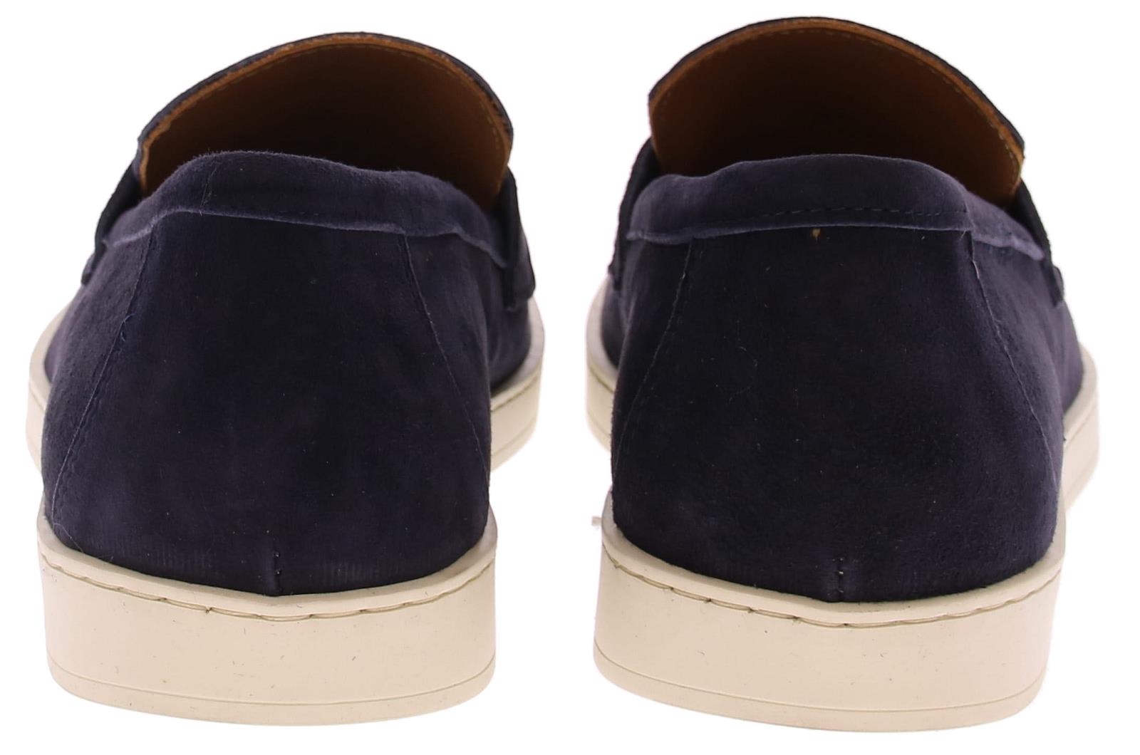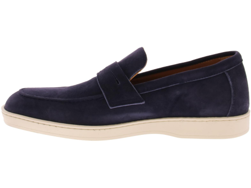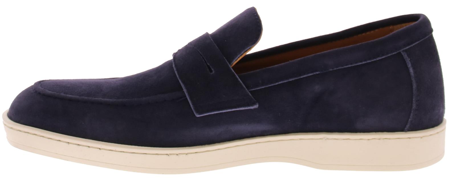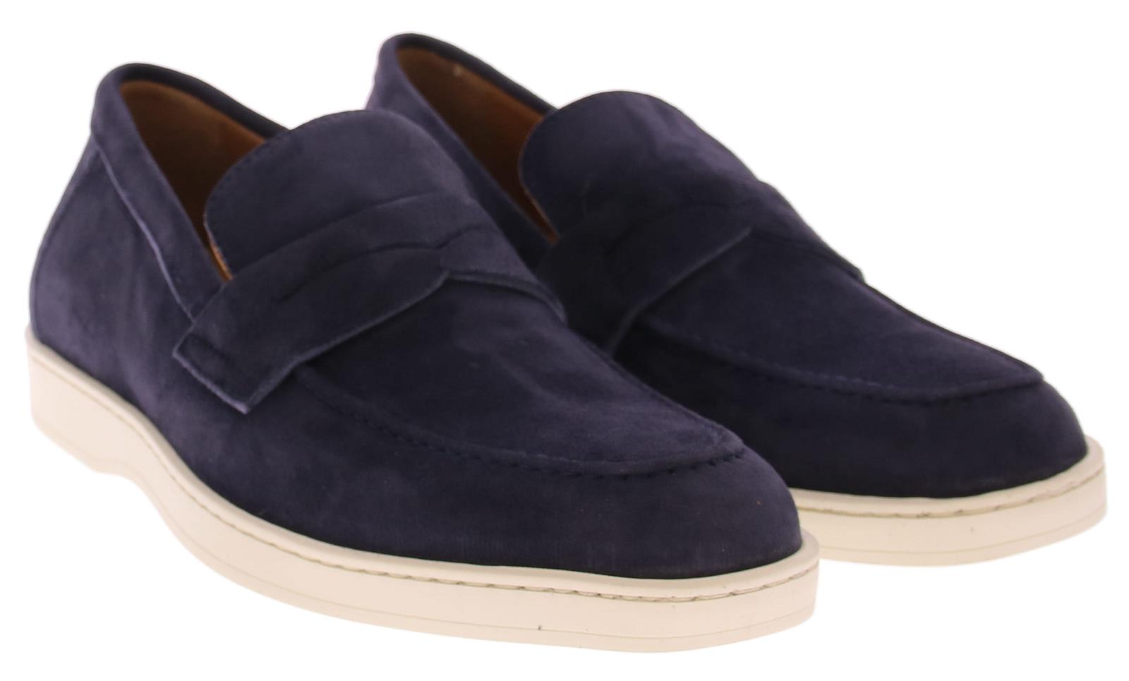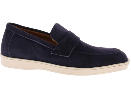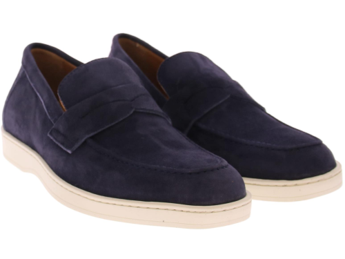 Dark blue suede men's loafer by Daniel Kenneth. This loafer comes on a sporty white rubber sole and has a leather lining.