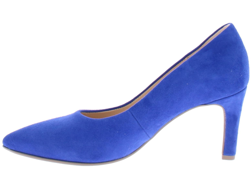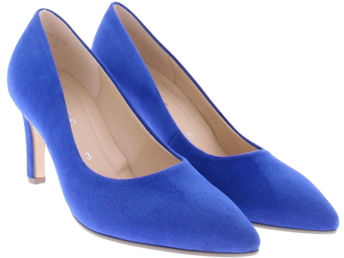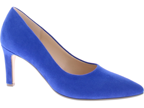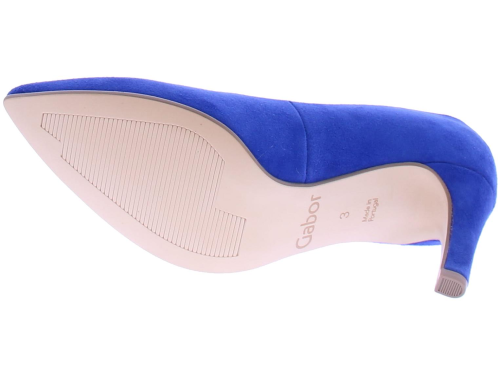 Cobalt blue suede women's pump by Gabor. This elegant pump has a pointed toe and a beautiful thin straight heel of 7 cm. Due to the simple but beautiful design you can combine this pump with all your outfits!