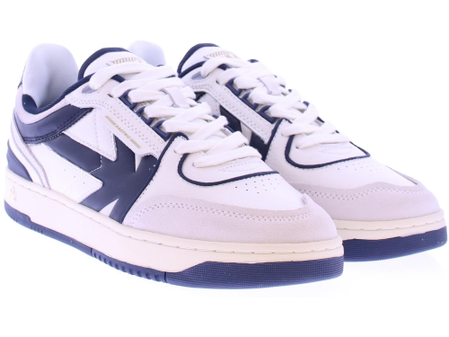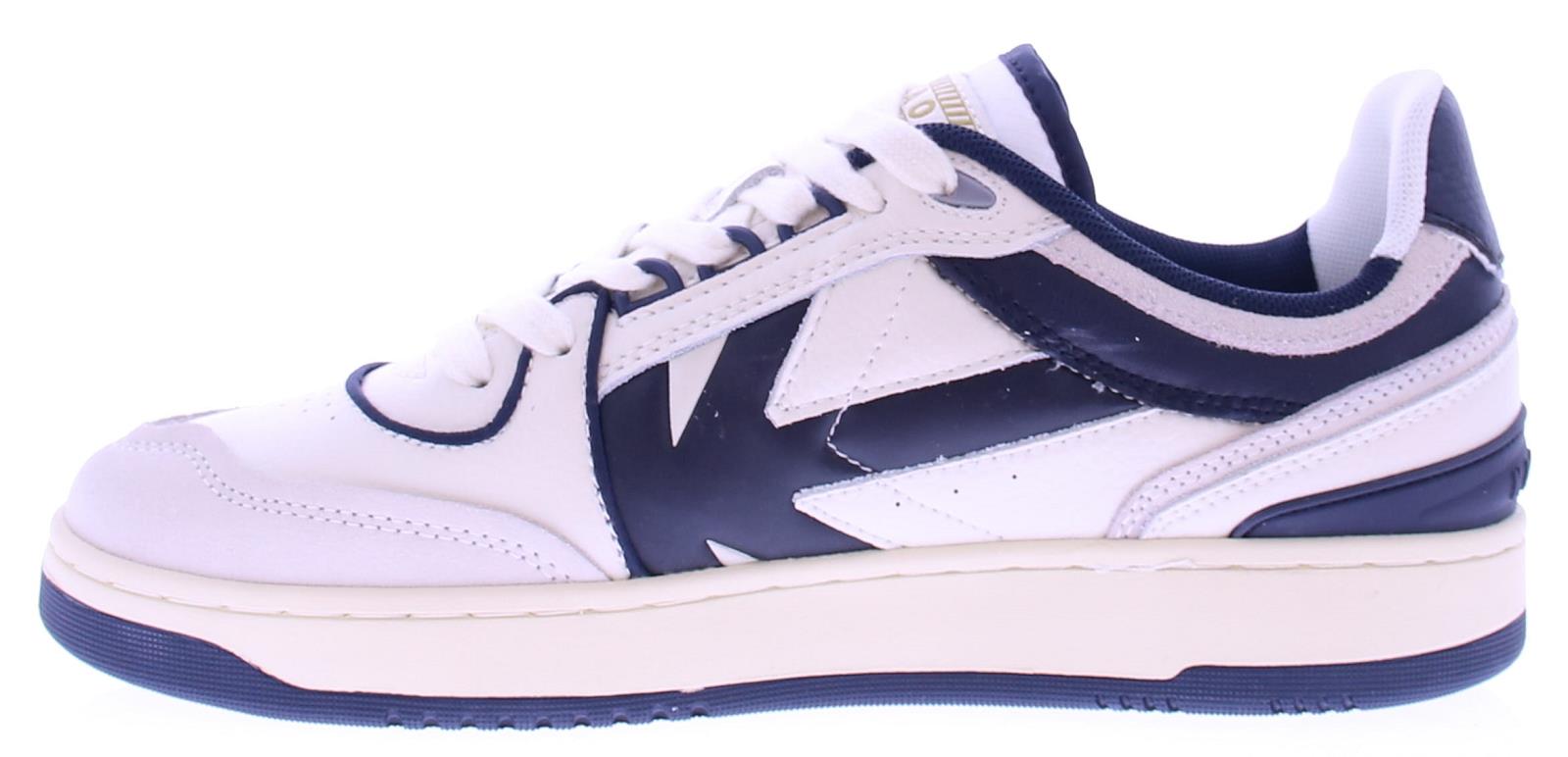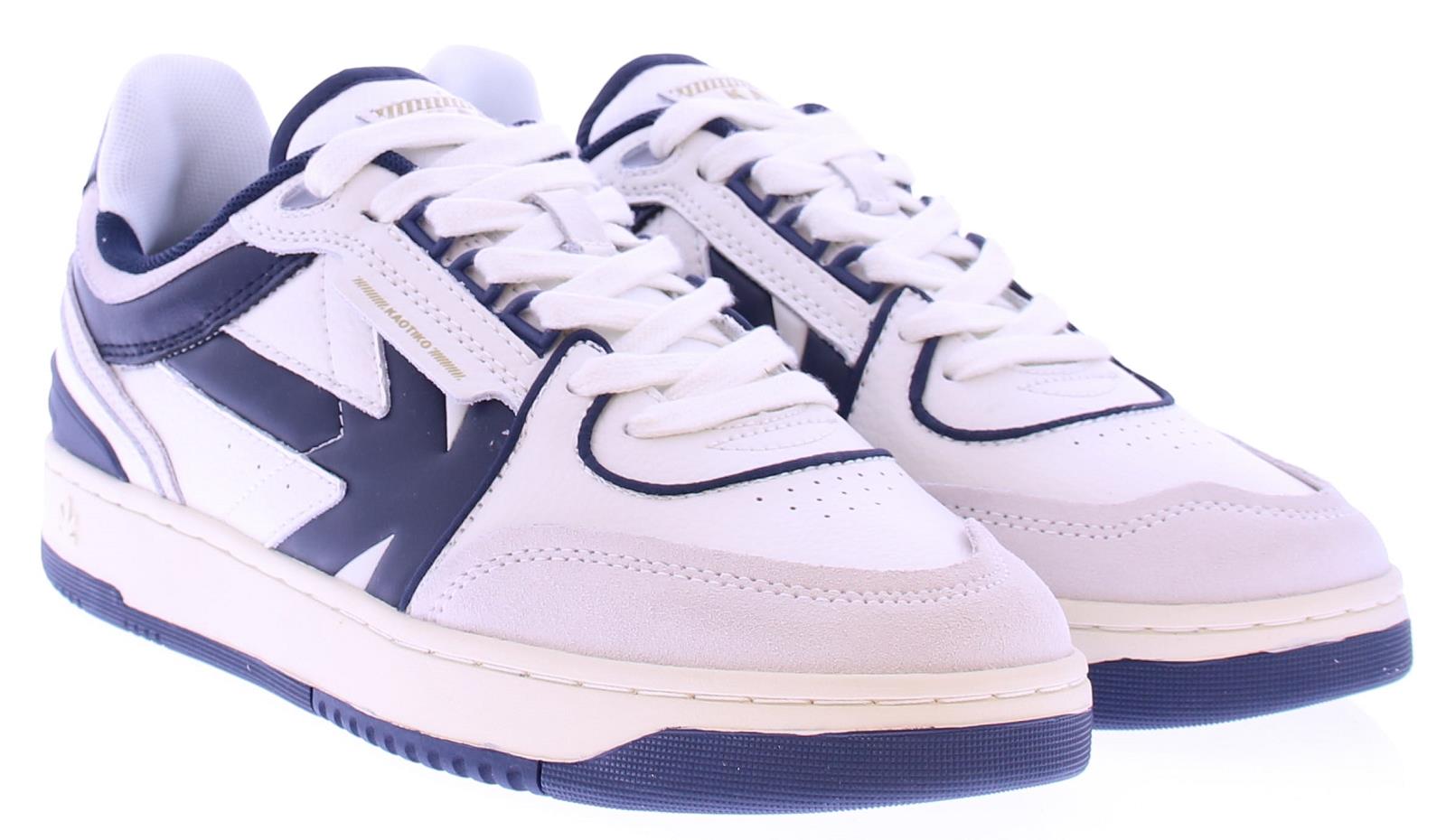 Men's sneaker from Kaotiko in blue and white leather with a fabric lining on a rubber base.