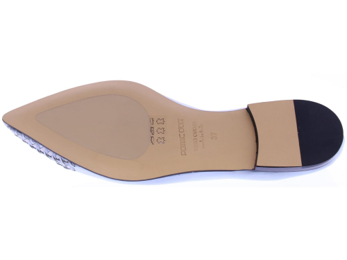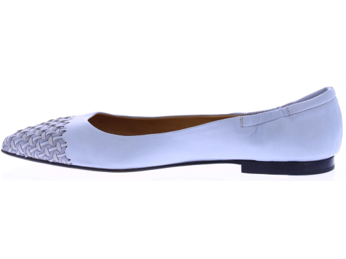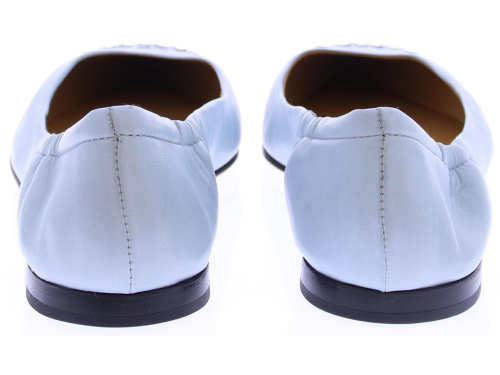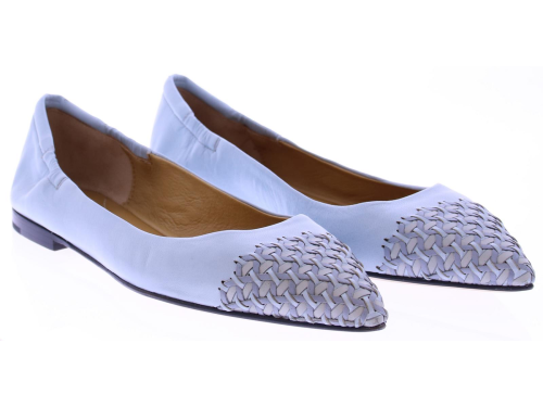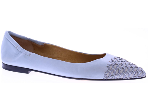Light blue leather women's ballerina by Pomme d'Or. The ballerina is made of the most beautiful and softest Italian calf leather with an extra soft layer under the foot. The ballerina has a pointed nose with a nice braided detail. The inside and the sole are made of leather, with a rubber insert. An elastic in the heel ensures a good fit.
