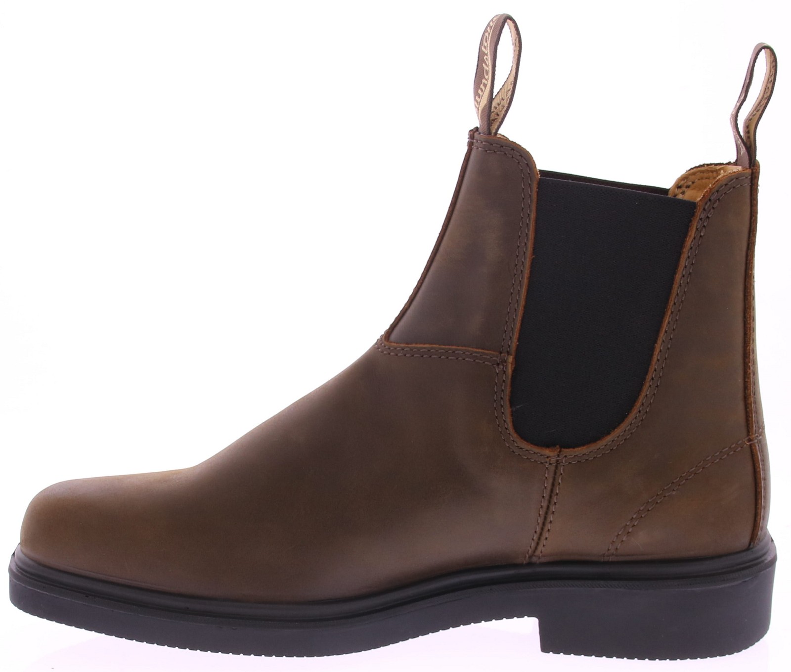Dark brown leather men's Chelsea boot from Blundstone in Australia. This boot is water-resistant down to the elastic. The flexible sole and comfortable footbed ensure that connoisseurs keep buying a new pair. These boots are also suitable for wider feet. The two pull tabs feature the Blundstone logo.