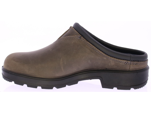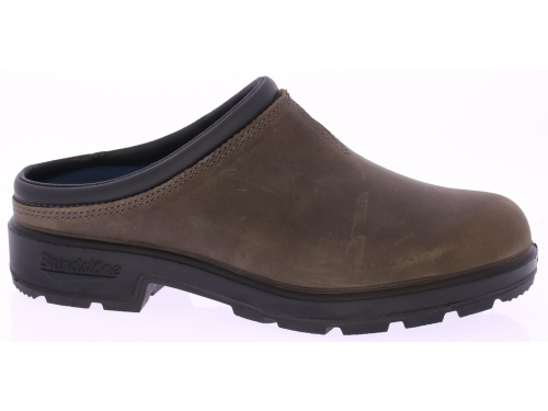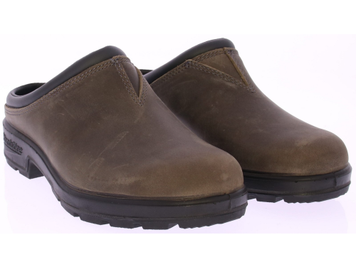 Dark brown nubuck leather men's mules from Blundstone. These comfortable men's mules from Blundstone are crafted from high-quality dark brown nubuck leather. The open slip-on design gives them a casual yet stylish look, perfect for everyday wear.