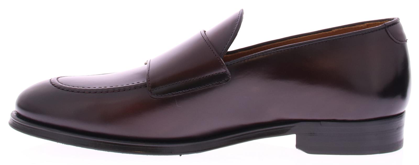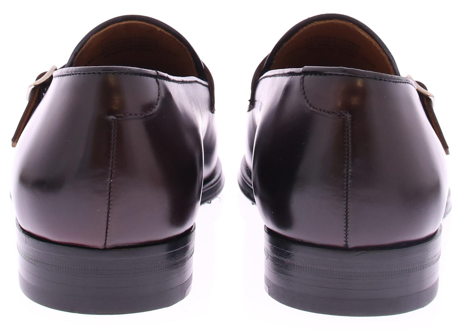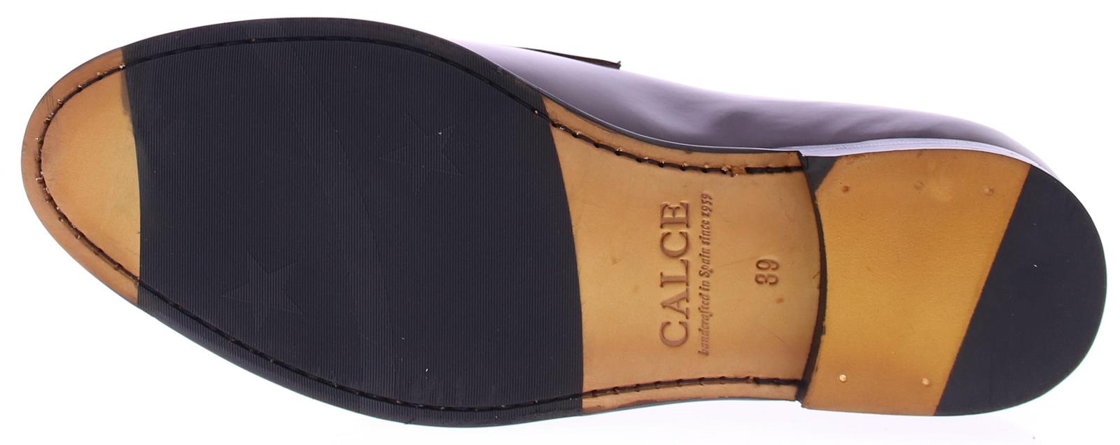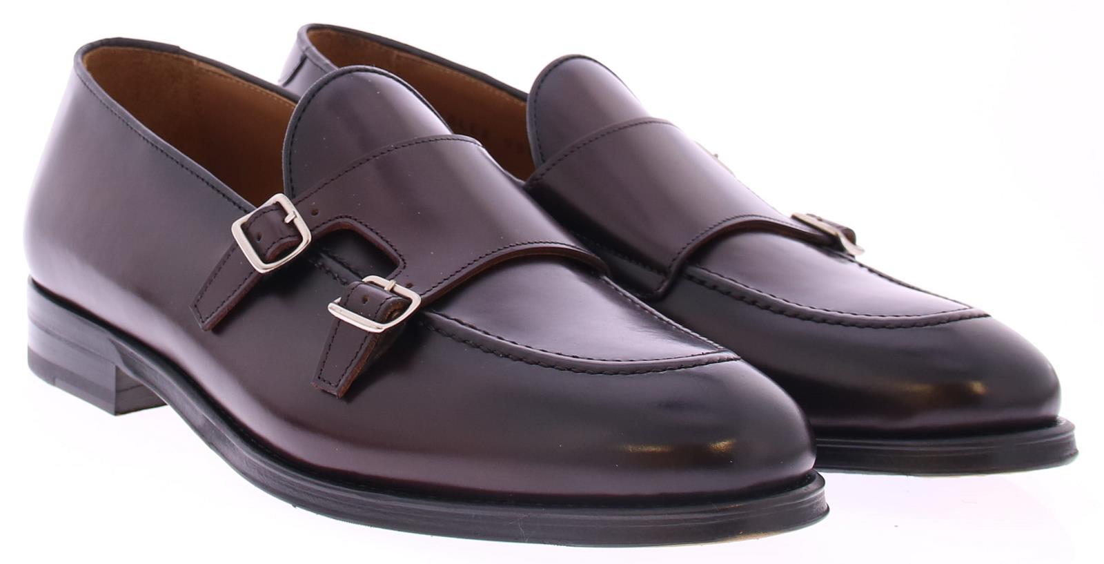 Men's loafer with flap and double buckle by Calce. This shoe is made of burgundy polish leather and has a leather sole with rubber insert. The lining is leather.