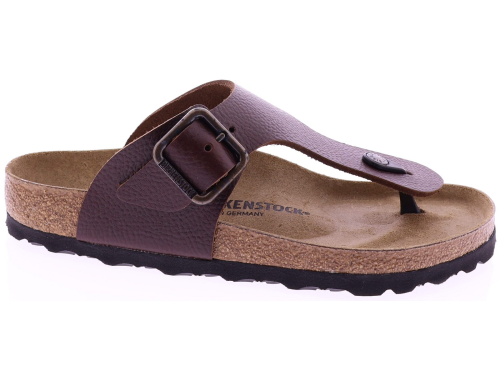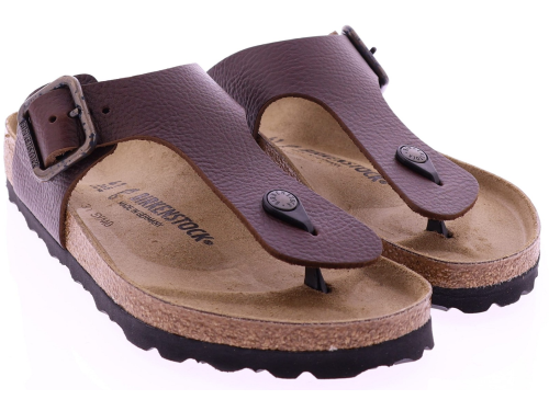 Brown leather men's thong sandal by Birkenstock. This Ramses Wire Buckle in the color Vintage Wood Roast is crafted from high-quality natural leather with a subtle vintage effect for an authentic look. The wide strap with a robust metal buckle ensures a secure and adjustable fit. The anatomically shaped cork-latex footbed offers long-lasting comfort and support, while the durable outsole guarantees optimal grip. Also discover other men's sandals from Birkenstock at Klijsen.